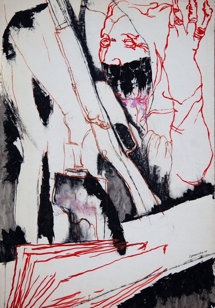 LUIGI GUERRICCHIO(MATERA 1932 - MATERA 1996)tecnica mista su cartaanno 1962cm 70x50firmata e datata in basso a destra