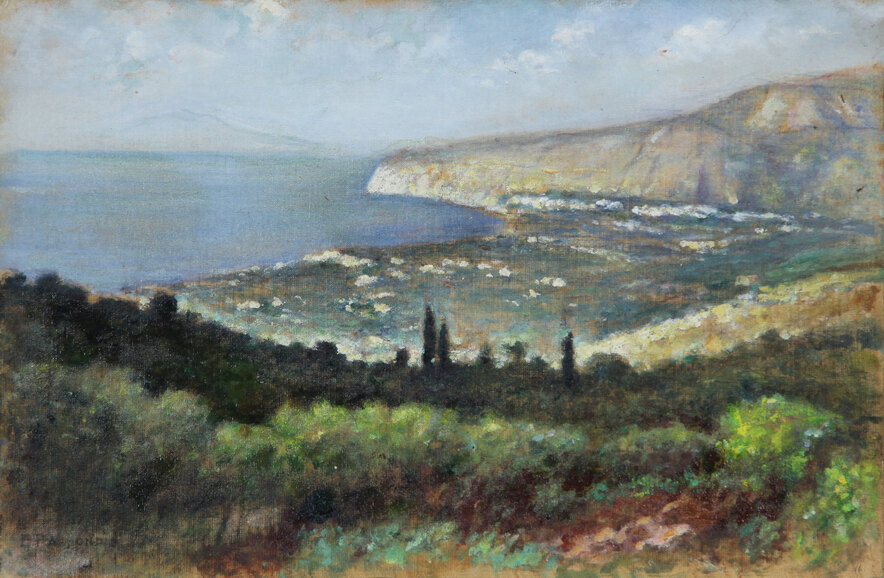 RAIMONDI ELVIRO'Panorama'olio su cartone telatocm 21x35firmato in basso a sinistra