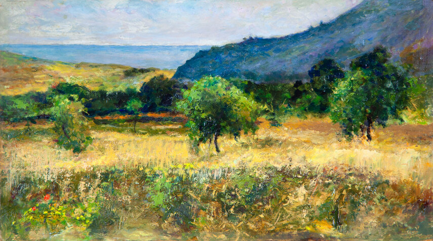RAIMONDI ELVIRO'Paesaggio'olio su tavolacm 19x35firmato in basso a destra;titolato al retro