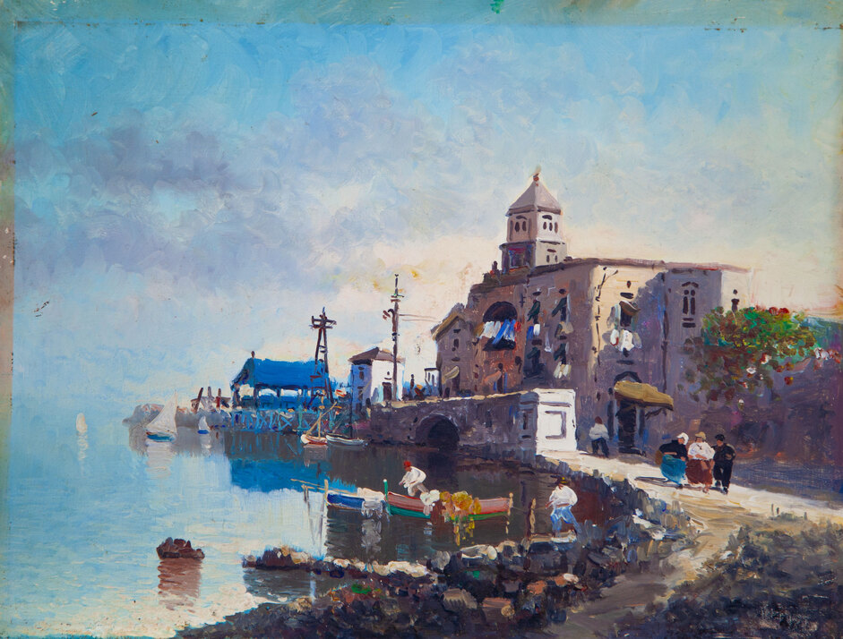 DE CORSI NICOLA'Porticciuolo di Procida'olio su tavolacm 30x40firmato in basso a sinistra; titolato al retro