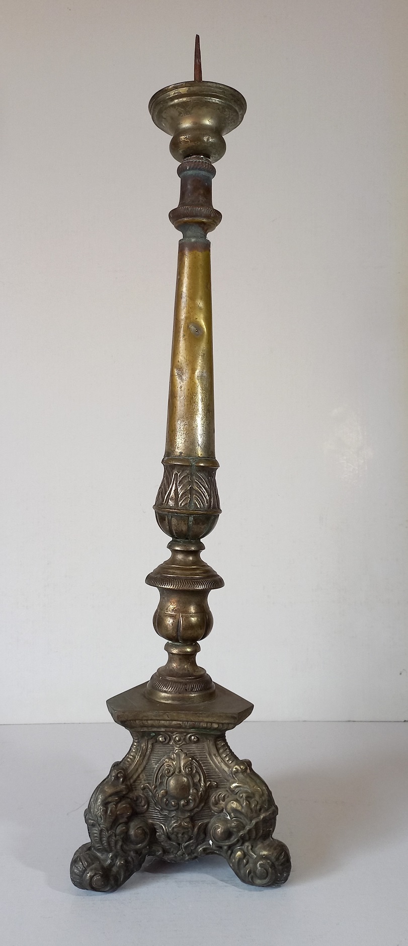 Antica torciera in metallo sbalzato h.cm.64