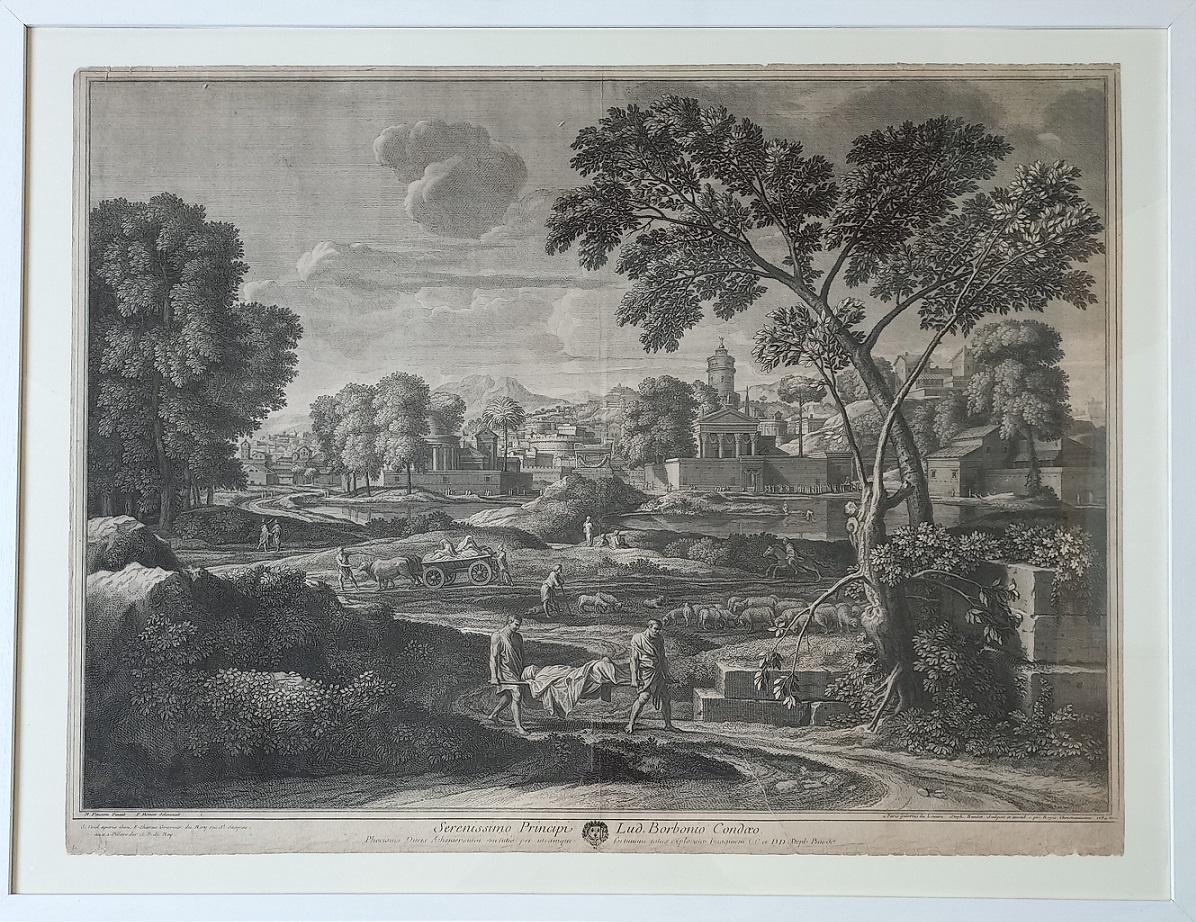 ETIENNE BAUDET (1638-1711) - Da Poussin: Orfeo ed Euridice bulino mm.575x755 e Sepoltura di Focione bulino mm.570x755
