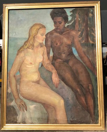 Firma indecifrata - Nudi femminili - Olio su tela cm.130x100 - XX secolo