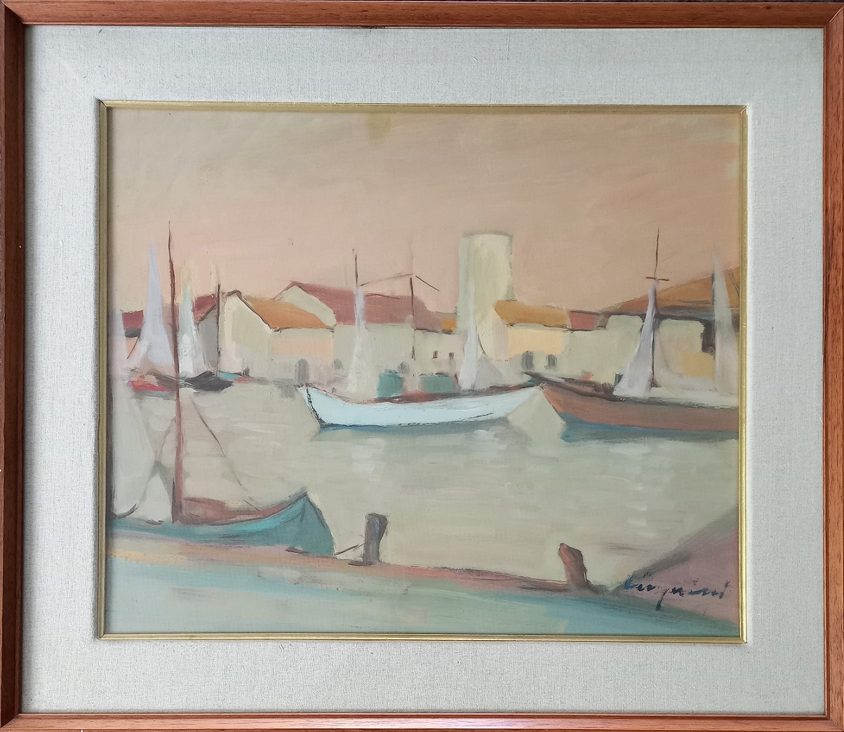 Firma indecifrata - Nel porto - Olio su tavola cm.50x60 firmato in basso a destra