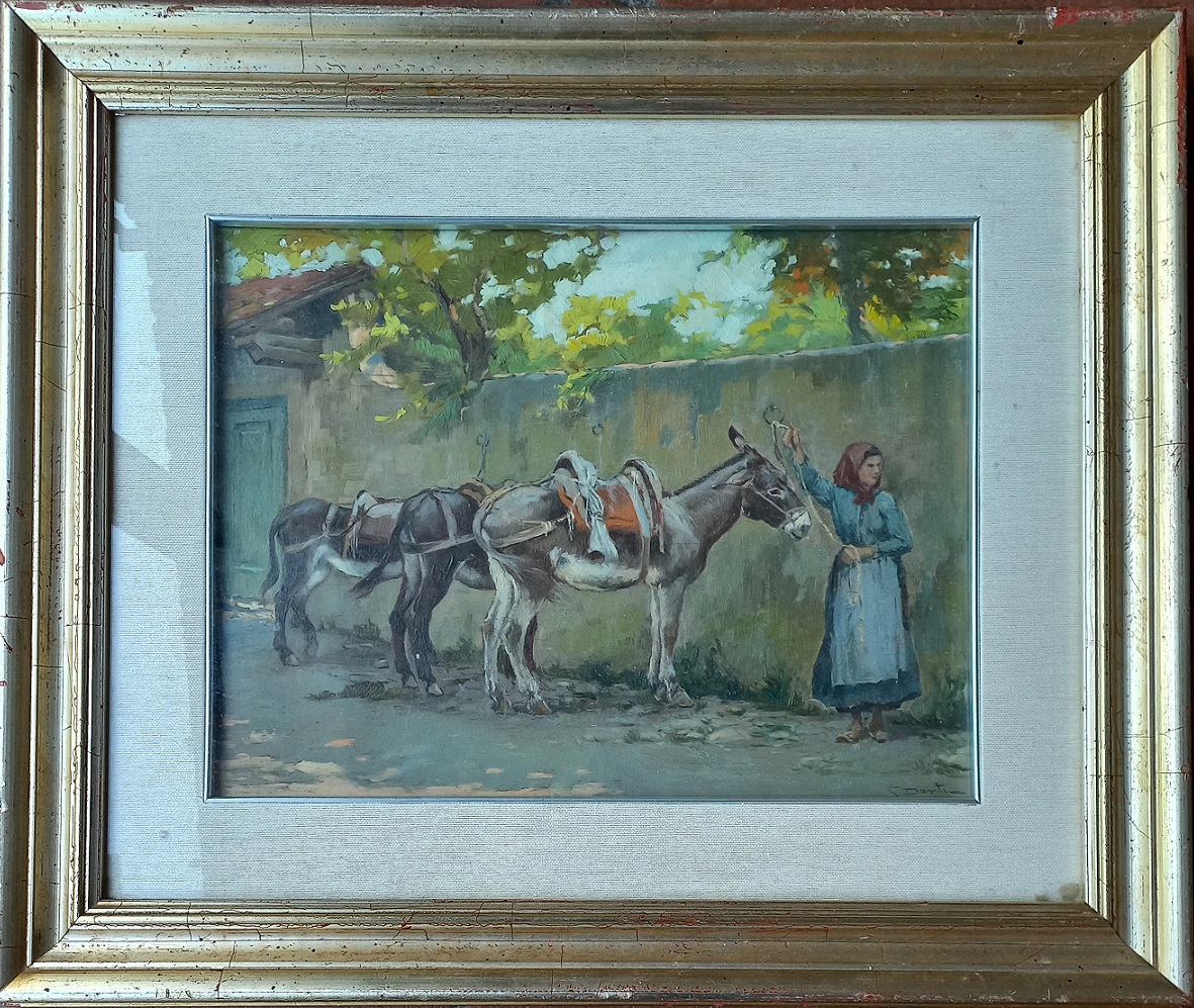 GINO DANTI (1881-1968) - Cavalli e figura - Olio su compensato cm.30x40 firmato in basso a destra