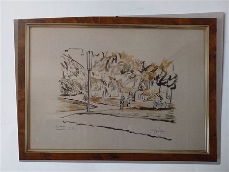 GIULIANA TAMBINI - Piacenza Giardini Pubblici - Tecnica mista su carta cm.35x50 firmato in basso a destra