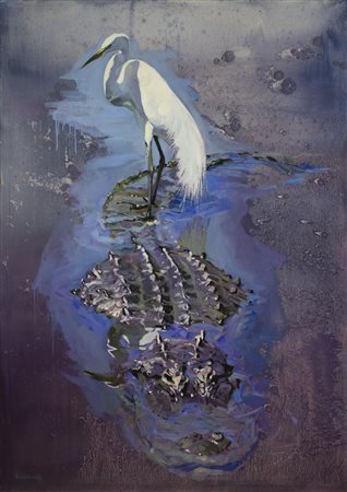 *OLEKSII GNEVYSHEV (KIEV 1991) - Great Egret 2016 - Olio su tela cm.140x100...