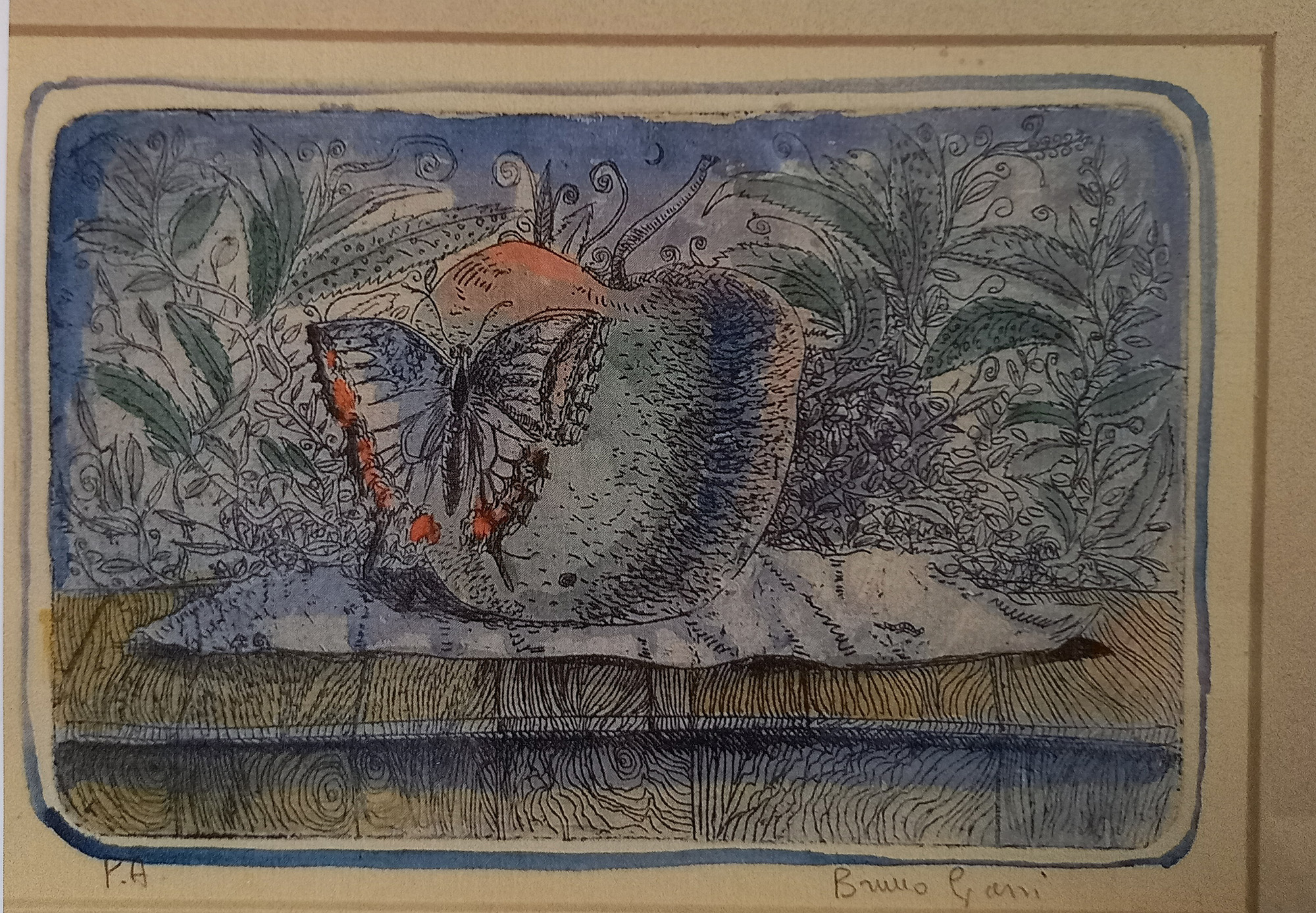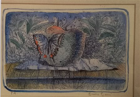 BRUNO GRASSI (1944) - Natura morta con farfalla - Multiplo su carta cm.26x34 firmato in basso a destra esemplare PA