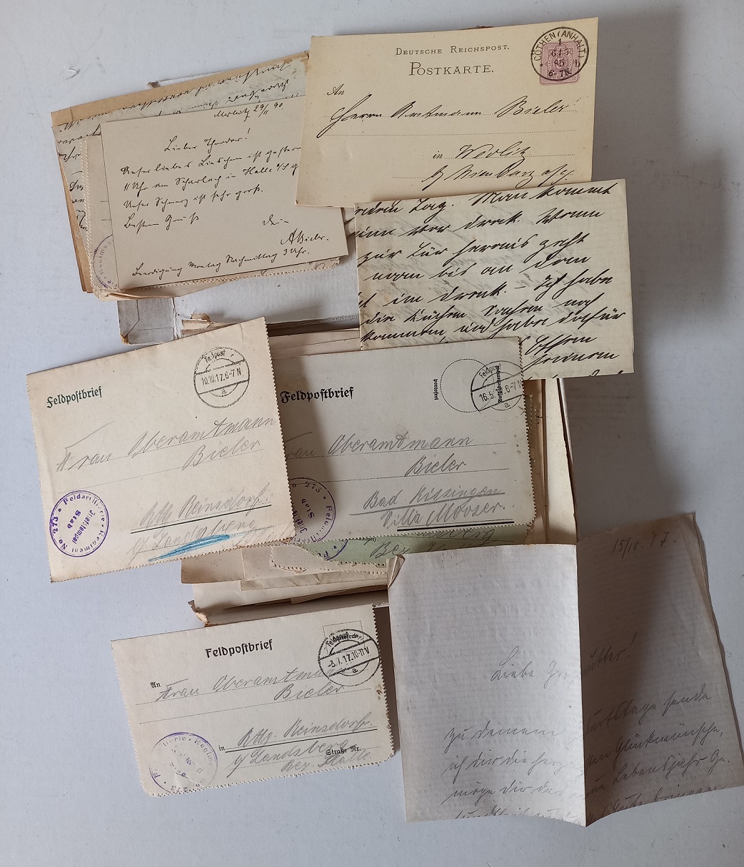 Scatola con numerose lettere e cartoline manoscritte in lingua tedesca