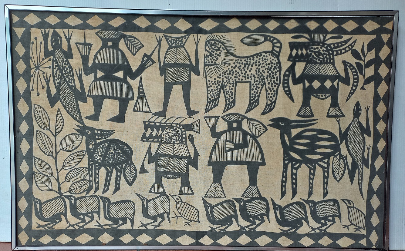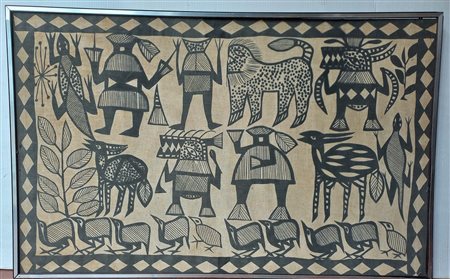 Arte Africana - Tessuto batik applicato su tavola in cornice cm.72x115 - XX...