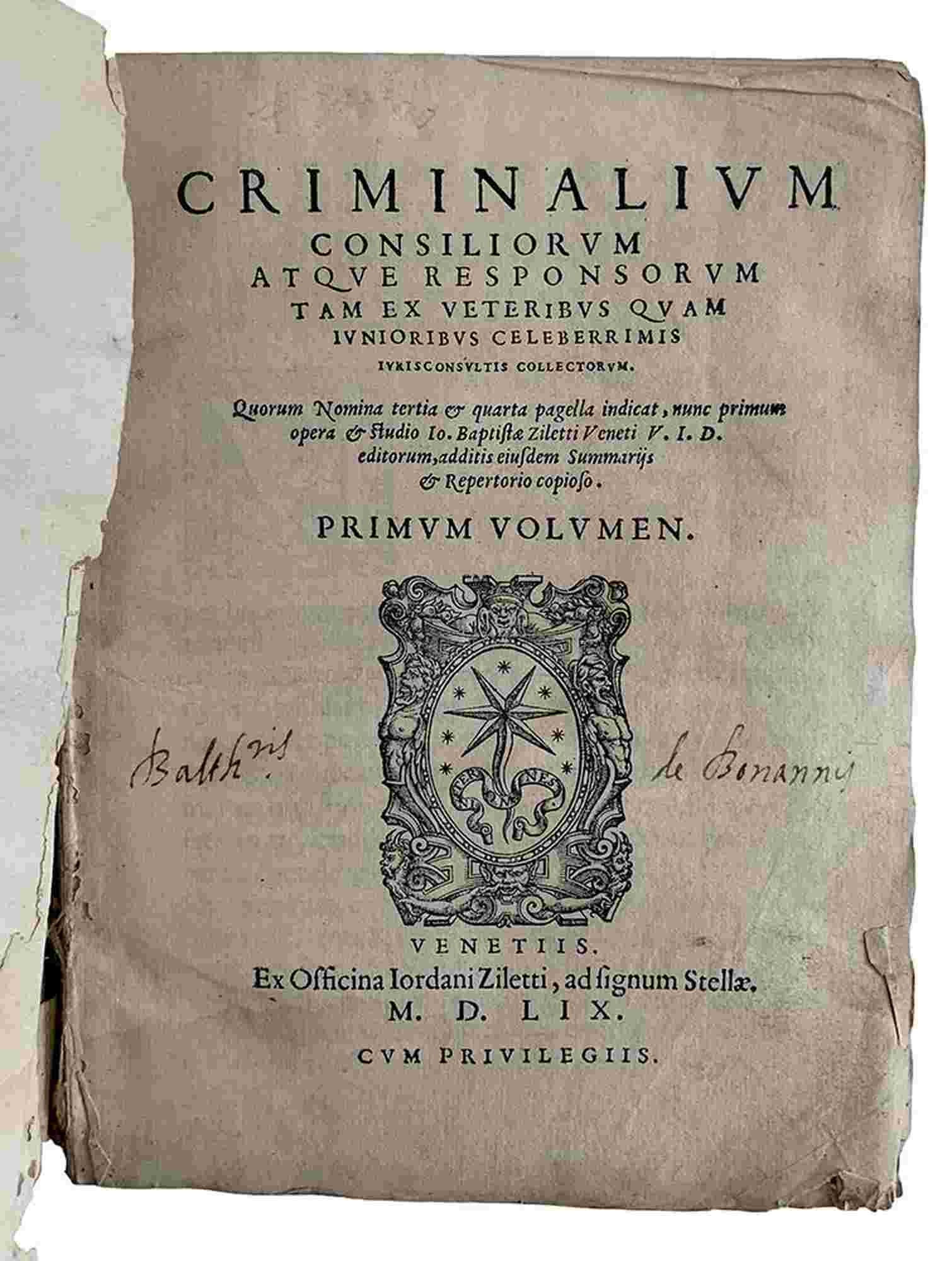 Criminalium Consiliorum, Venezia, Ex Officina Iordani Ziletti, 1559
