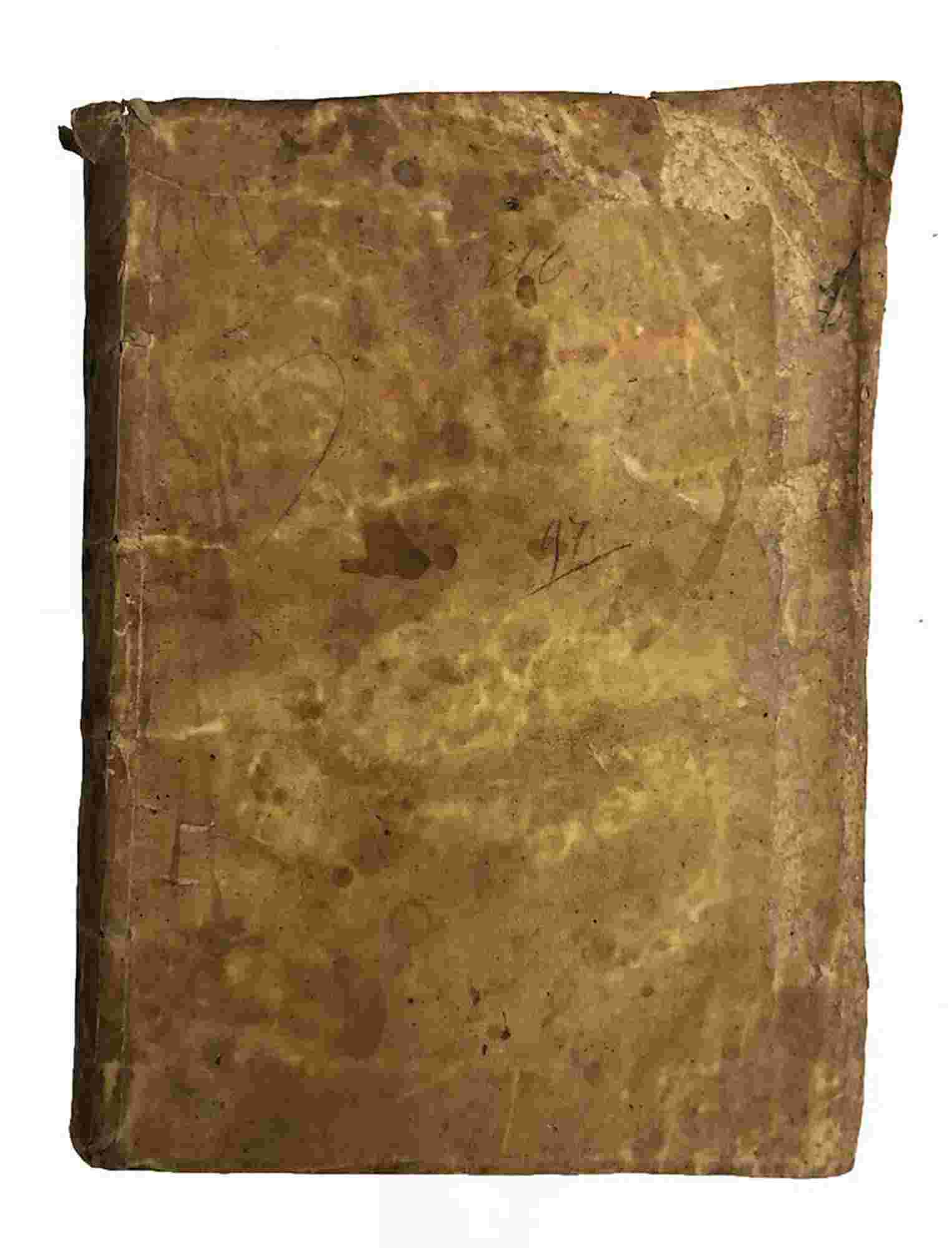Contemporary limp vellum with handwritten title on the spine, slightly damaged. Good copy except for some slight must stains on last pages and folds.