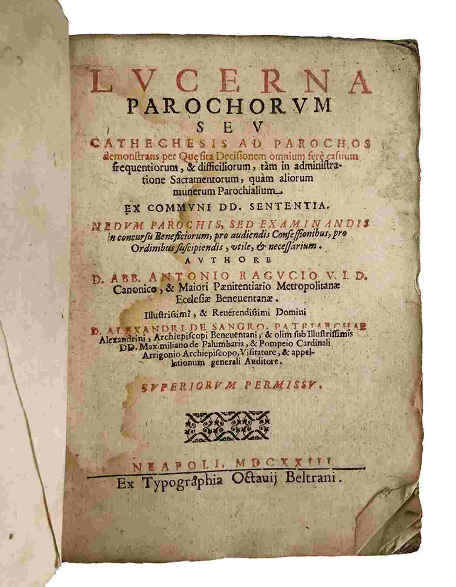 Lot 119 | ANTONIUS RAGUCIUS: Lucerna Parochirunìm, Napoli, Ex Typ. Octavii Beltranii, 1623