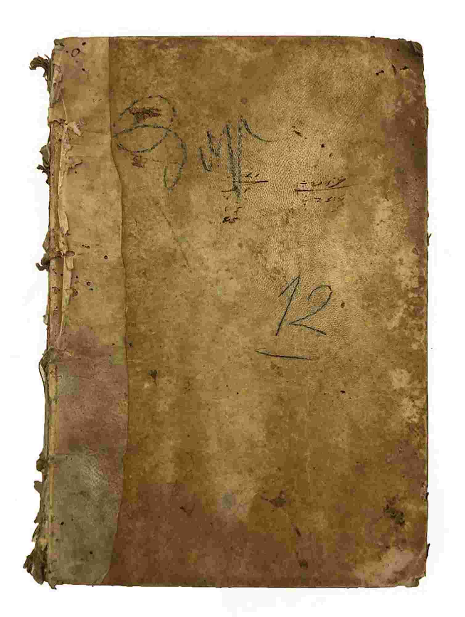 Contemporary hard vellum, damaged. Ownership marks on the title page and the second page. Slight foxing. Very few handwritten notes on the margins. Last blank page glued to the cover.
