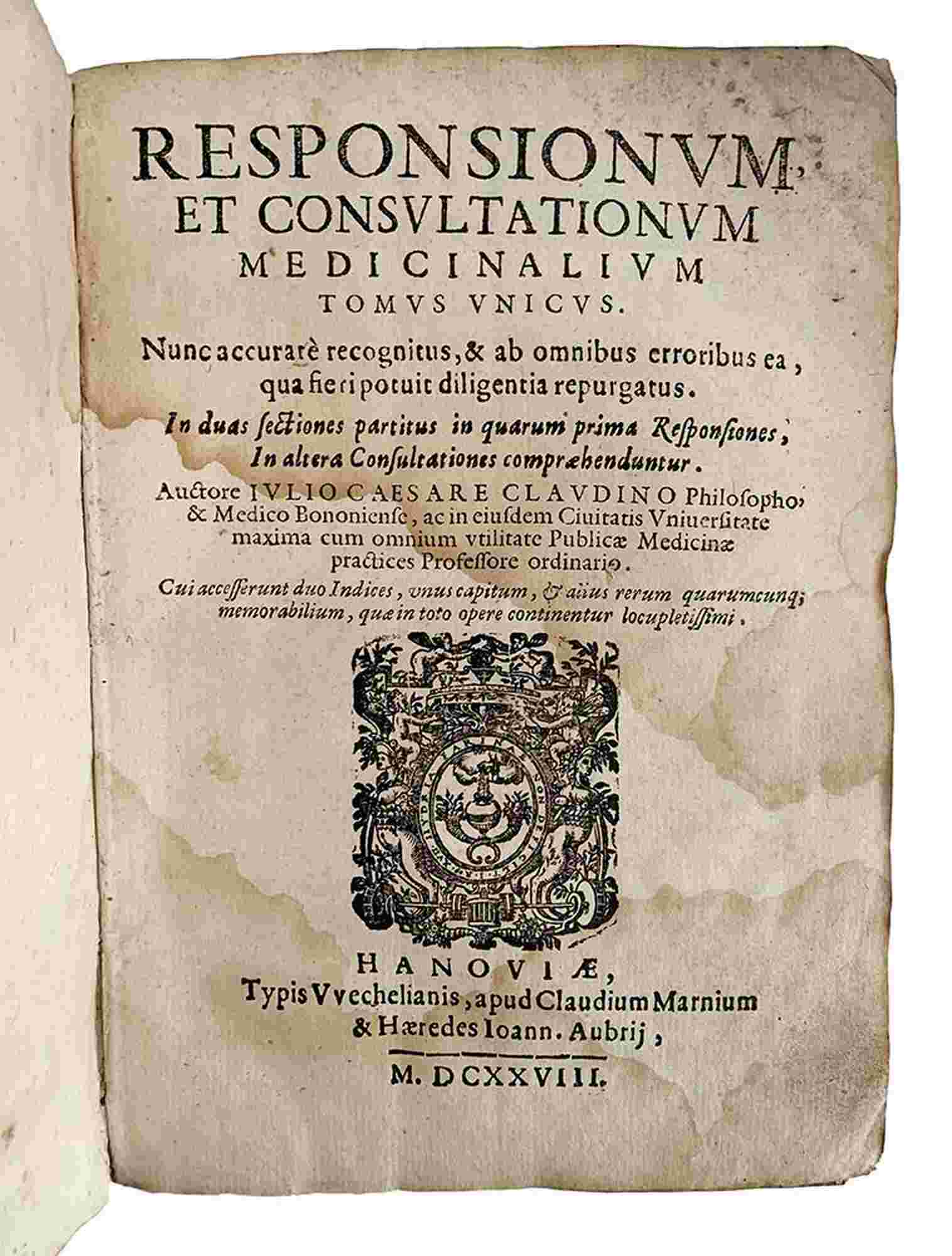 GIULIO CESARE CLAUDINI: Responsionum Et Consultationum Medicinalium, Hanover, Apud Claudium Marnium, 1628