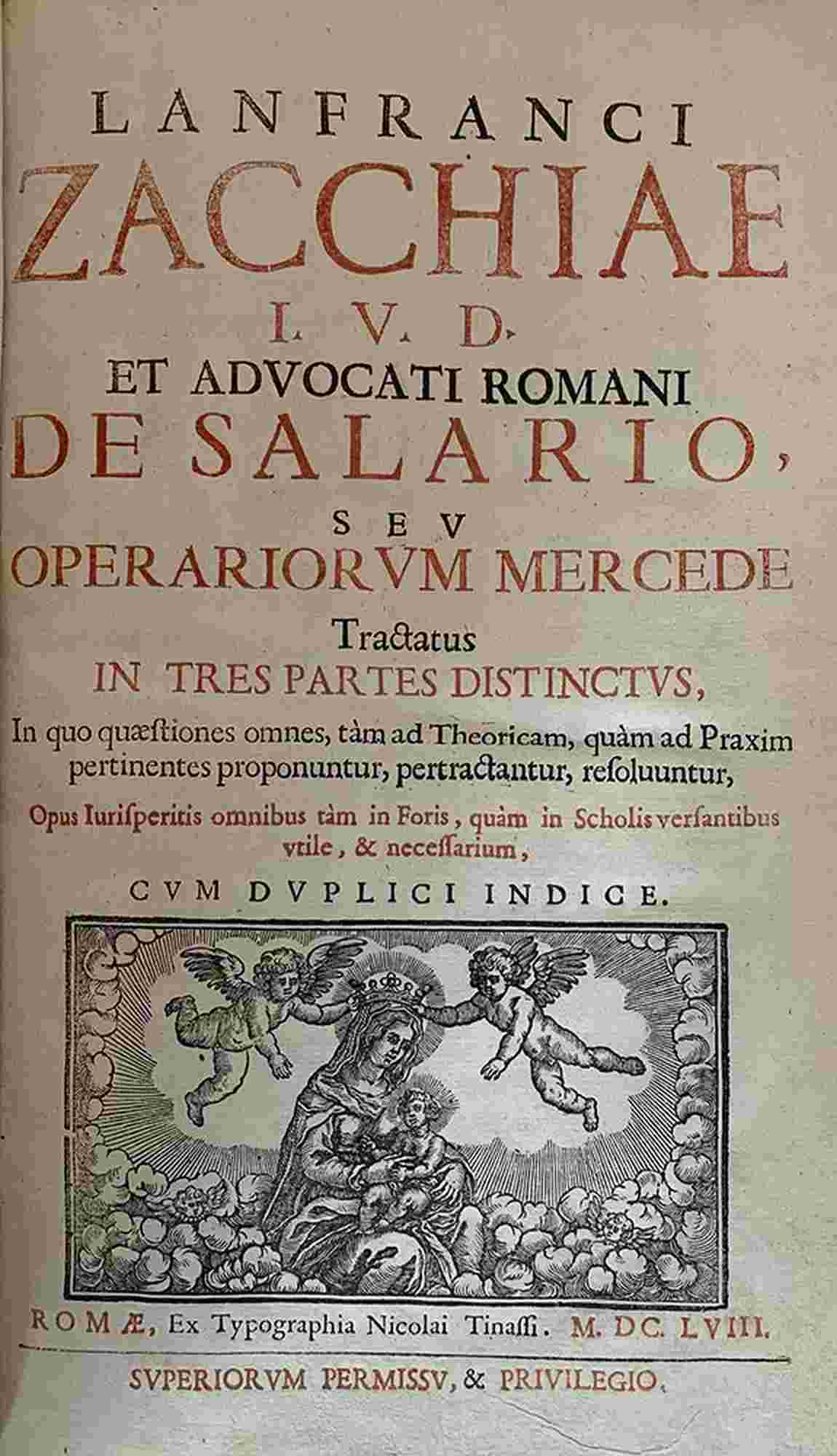 LANFRANCO ZACCHIA: De Salario Tractatus, Roma, Niccolo' Tinassi, 1658