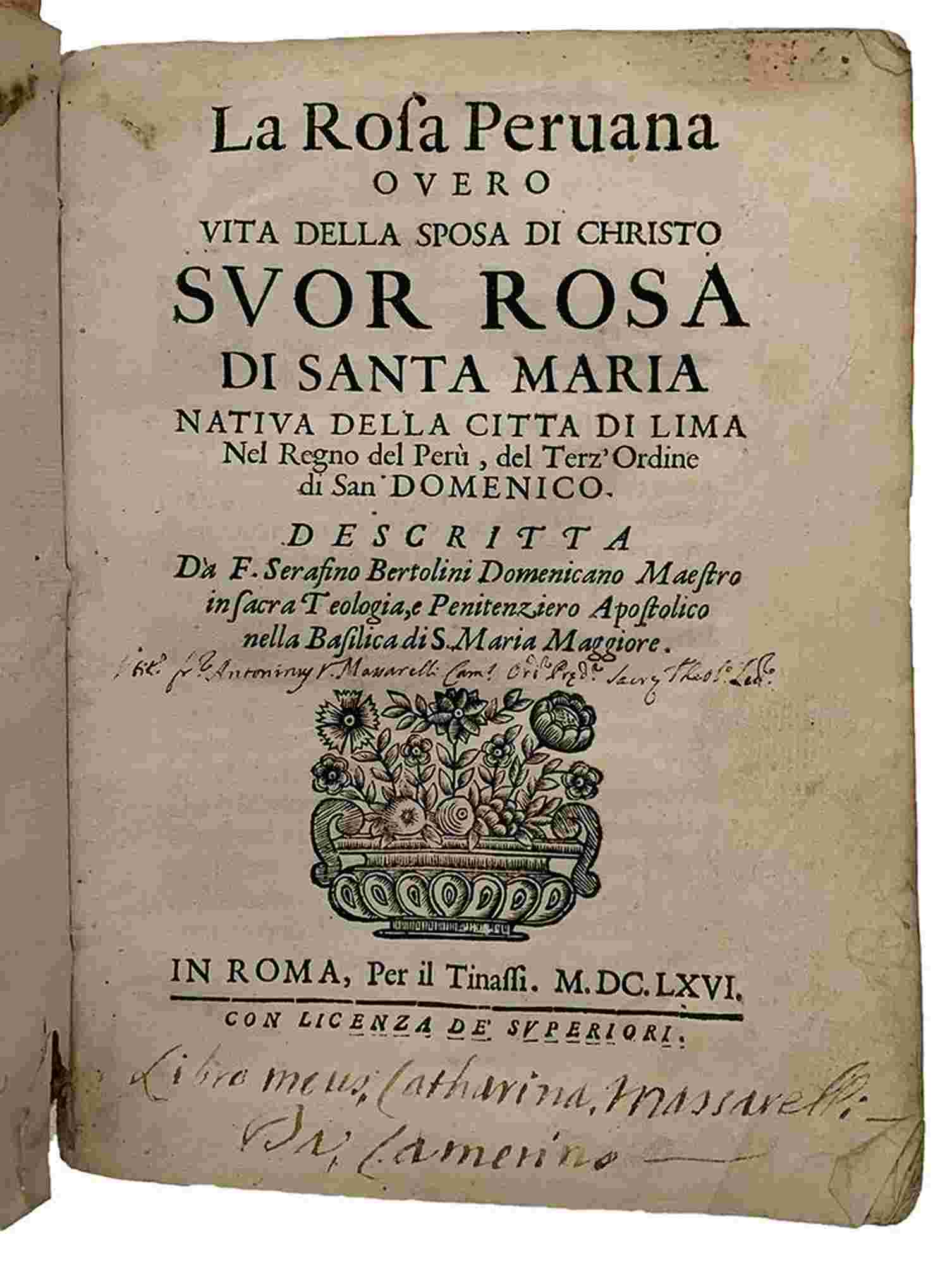 SERAFINO BERTOLINI: La Rosa Peruana, Roma, Per Il Tinassi, 1666