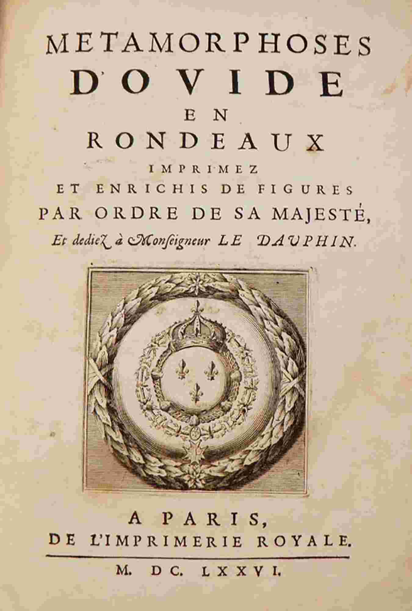 Metamorphoses d’Ovide en rondeaux imprimez et enrichis de figures par ordre de sa majesté, et dediez à Monsieur le Dauphin A Paris, de l’Imprimerie Royale, 1676