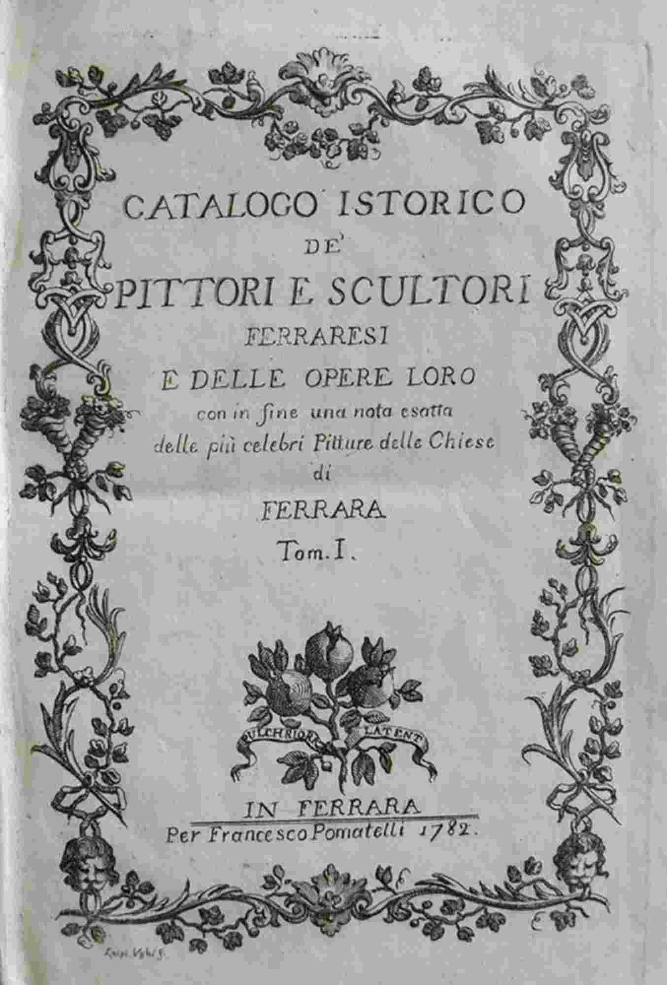 Catalogo istorico de' pittori e scultori ferraresi e delle opere loro con in fine una nota esatta delle più celebri Pitture delle Chiese di Ferrara. Tomo I-IV In Ferrara, Per Francesco Pomatelli,1782-1783