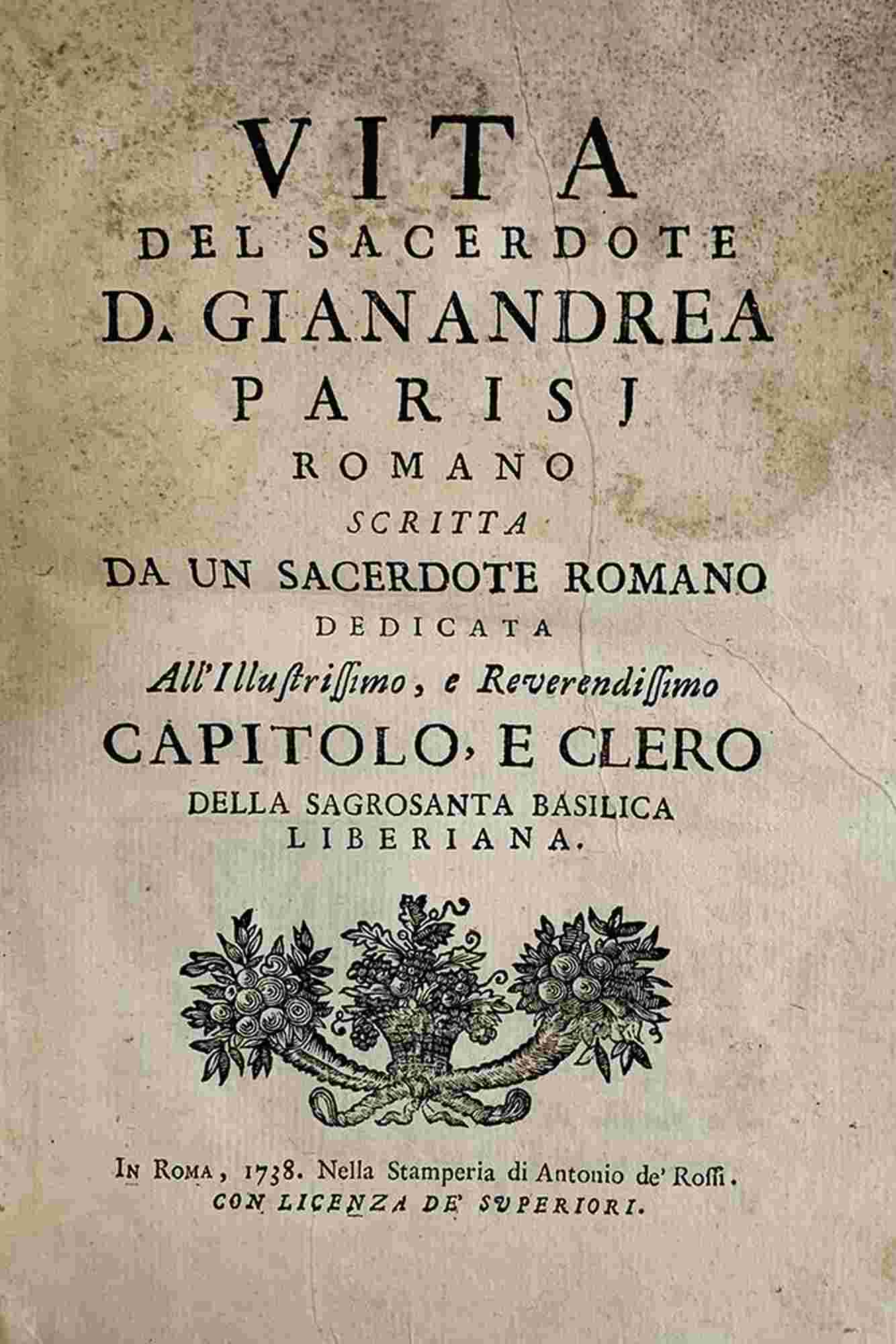 ANON.: Vita Del Sacerdote Gianandrea Parisi, Roma, Stamperia Di Antonio De Rossi, 1738