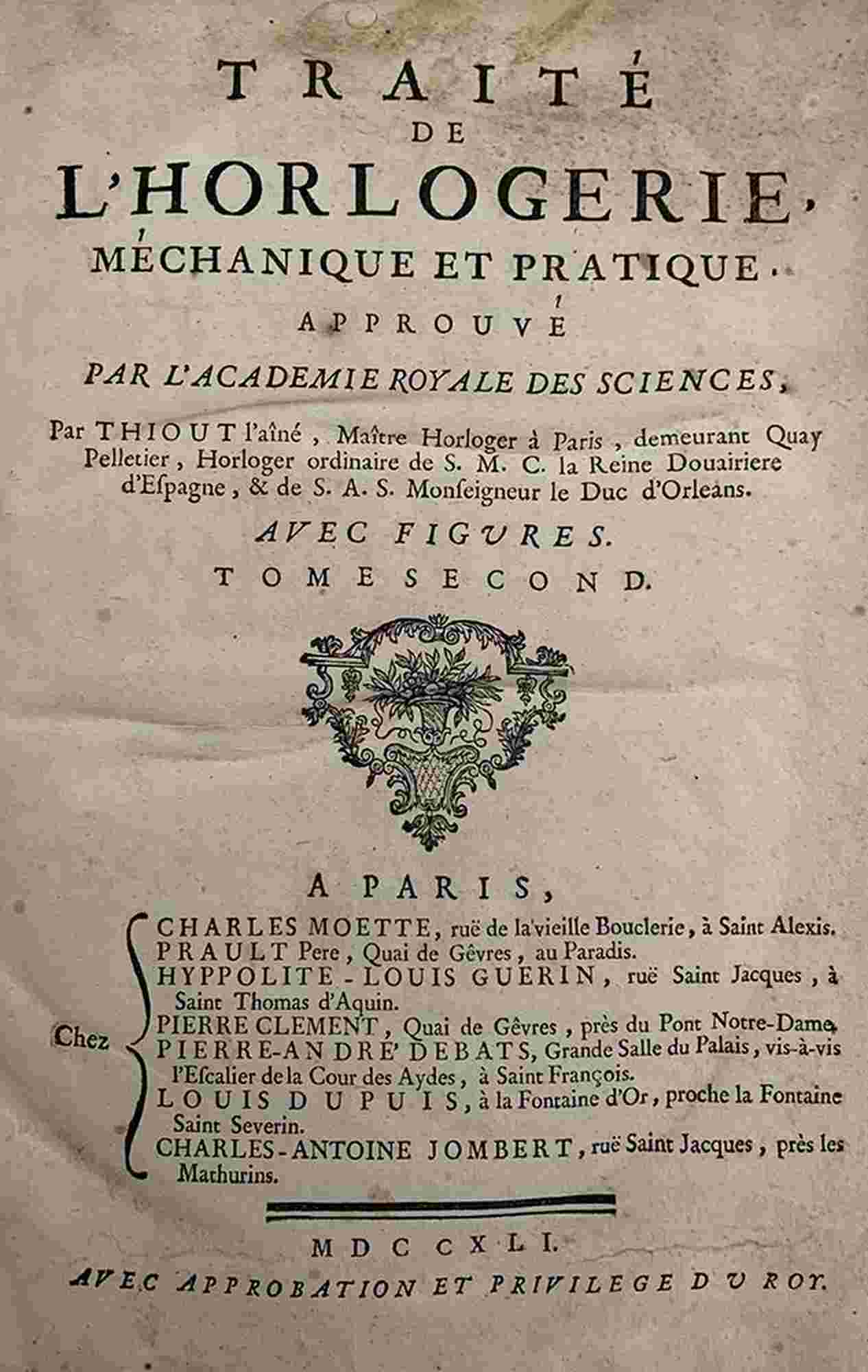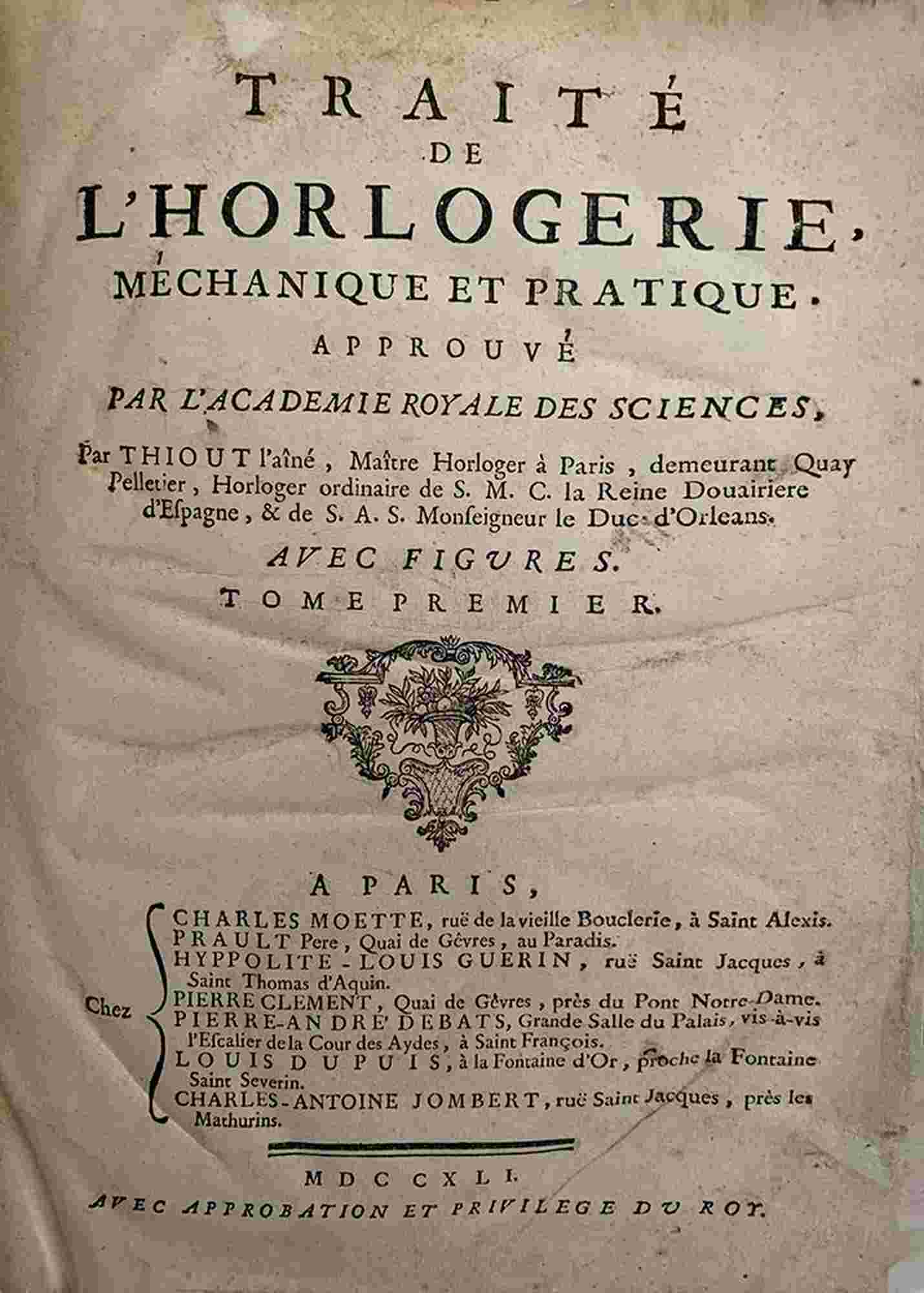 L'AINE' THIOUT: Traite' De L'Horlogerie, Paris, Charles Moette, 1741