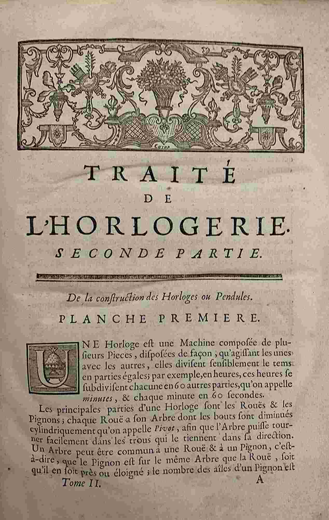 Traite' De L'Horlogerie, Paris, Charles Moette, 1741