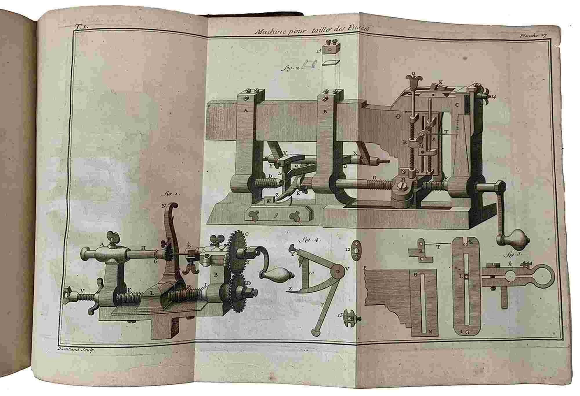Two volumes. Contemporary calf, 5-rib spine with gilded ornaments. Some water stains. Complete with 50 engraved folding plates (vol. I) and 41 engraved folding plates (vol. 2).