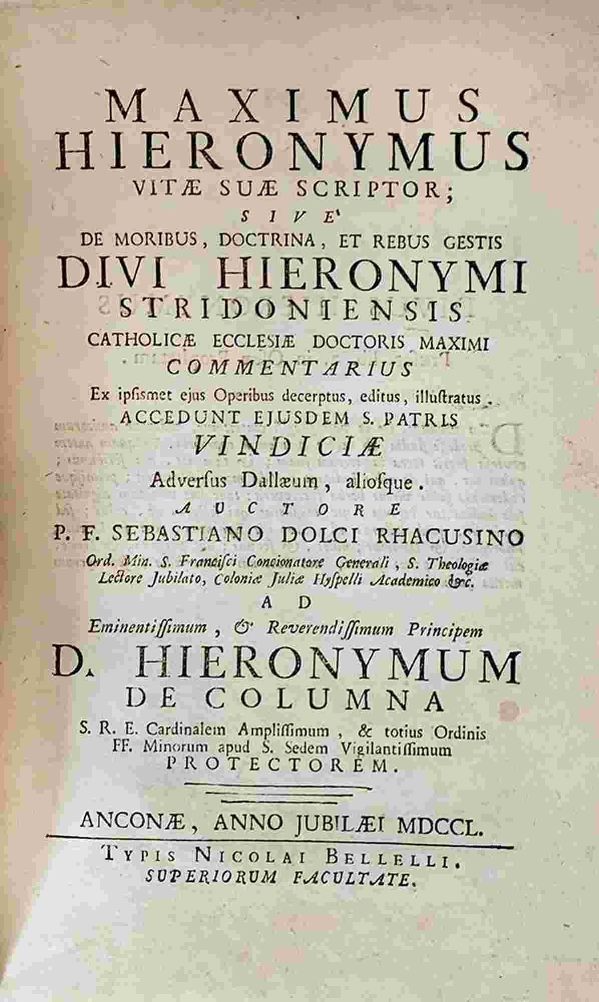 Lot 204 | HIERONYMUS STRIDONIENSIS: De Moribus Doctrina, Ancona, Niccolo' Bellelli, 1750