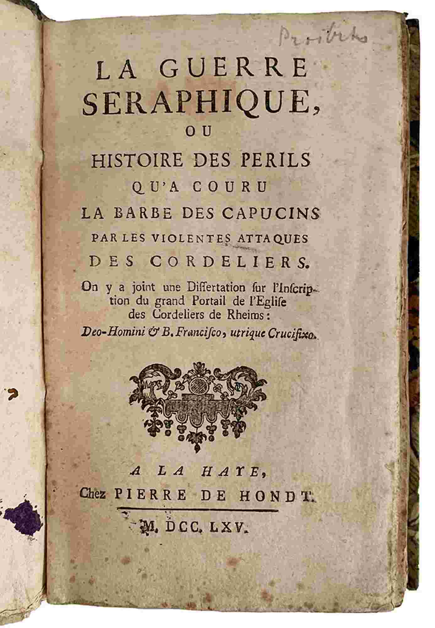 JEAN BAPTISTE THIERS: La Guerre Seraphique, L'Aja, Pierre De Hondt, 1765