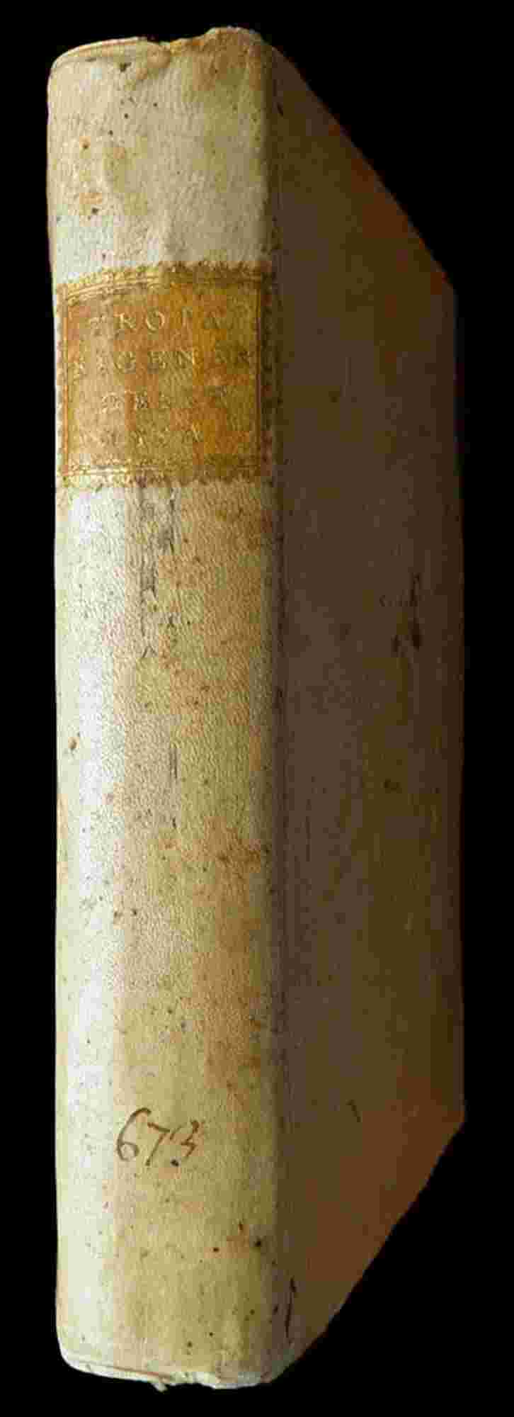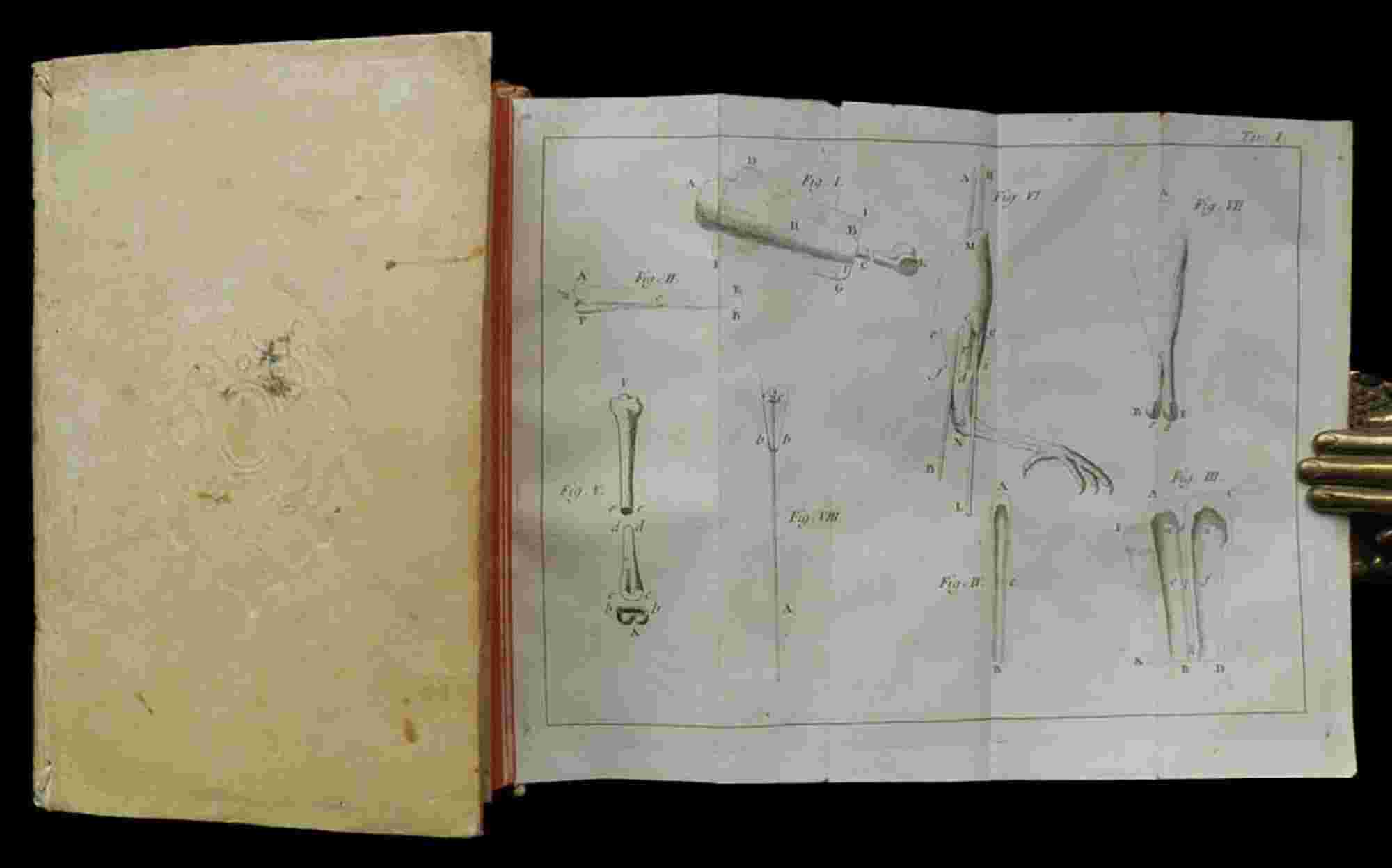 § Large 8vo (200 x 175.); XIX, [1], 288 pp., signature a1-10, A-S1-8; VIII engraved folding plates, 1 folding table. Contemporary vellum, blind-tooled arabesque on both centre-boards, labelled title-piece . Some browning at the plates, but very fine copy.