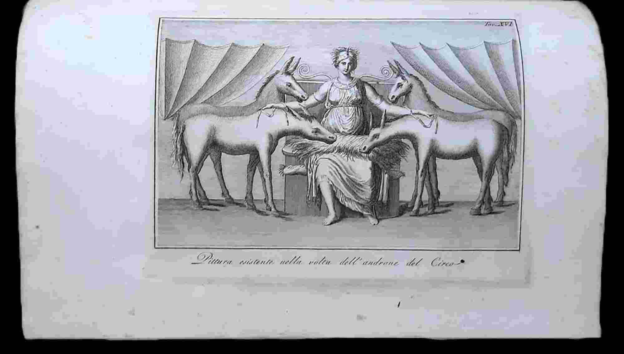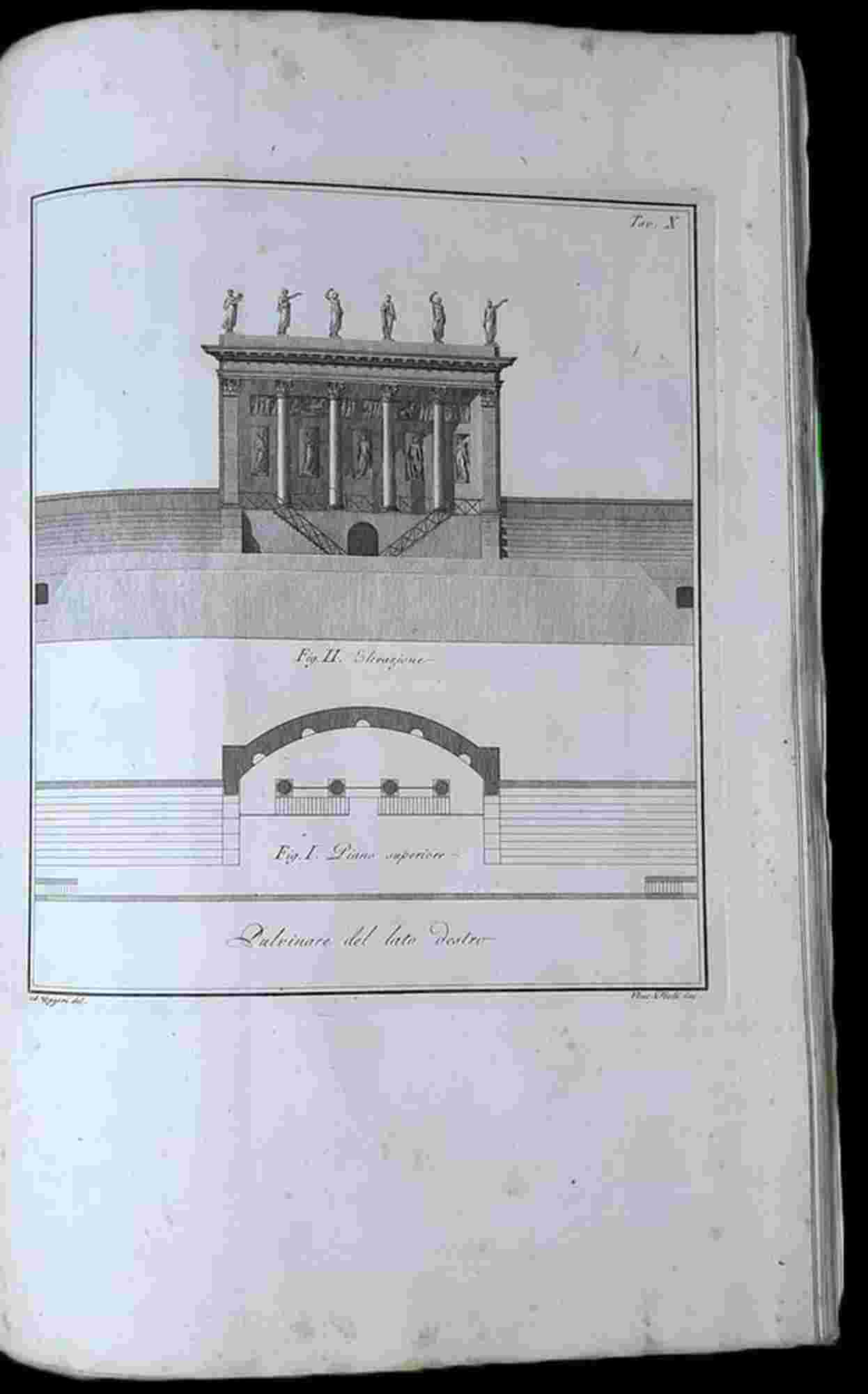 First edition, published postumously. Giovanni Ludovico Bianconi (1717-1781) acquired some fame as a physician and was appointed to act in this function for the Elector of Saxony. Less known are his activities in the field of archeology. He conceived the ambitious project to describe all the monuments existing along the Appian road, but he died before he could achieve its aim, leaving only the part concerning the circuses, that was published some years later by the Roman lawyer and amateur archaeologist Carlo Fea. The plates, by Delena, Bossi, Uggeri, Feoli, Barbazza, Legnano and Carattoni were engraved by Angelo Uggeri (1754-1837), a Roman architect. The book is a complete study not only of the architectural features of the Roman circuses, but also of the games there held, such as chariot races, naval fights gladiator duels etc. Bianconi discusses the Etruscan origin of the circus games and the religious ceremonies held in the circuses. “Sonovi oltre a molte vignette allusive al testo venti gran tavole intagliate in rame. Opera accreditata e piena di dottrina” (Cicognara).