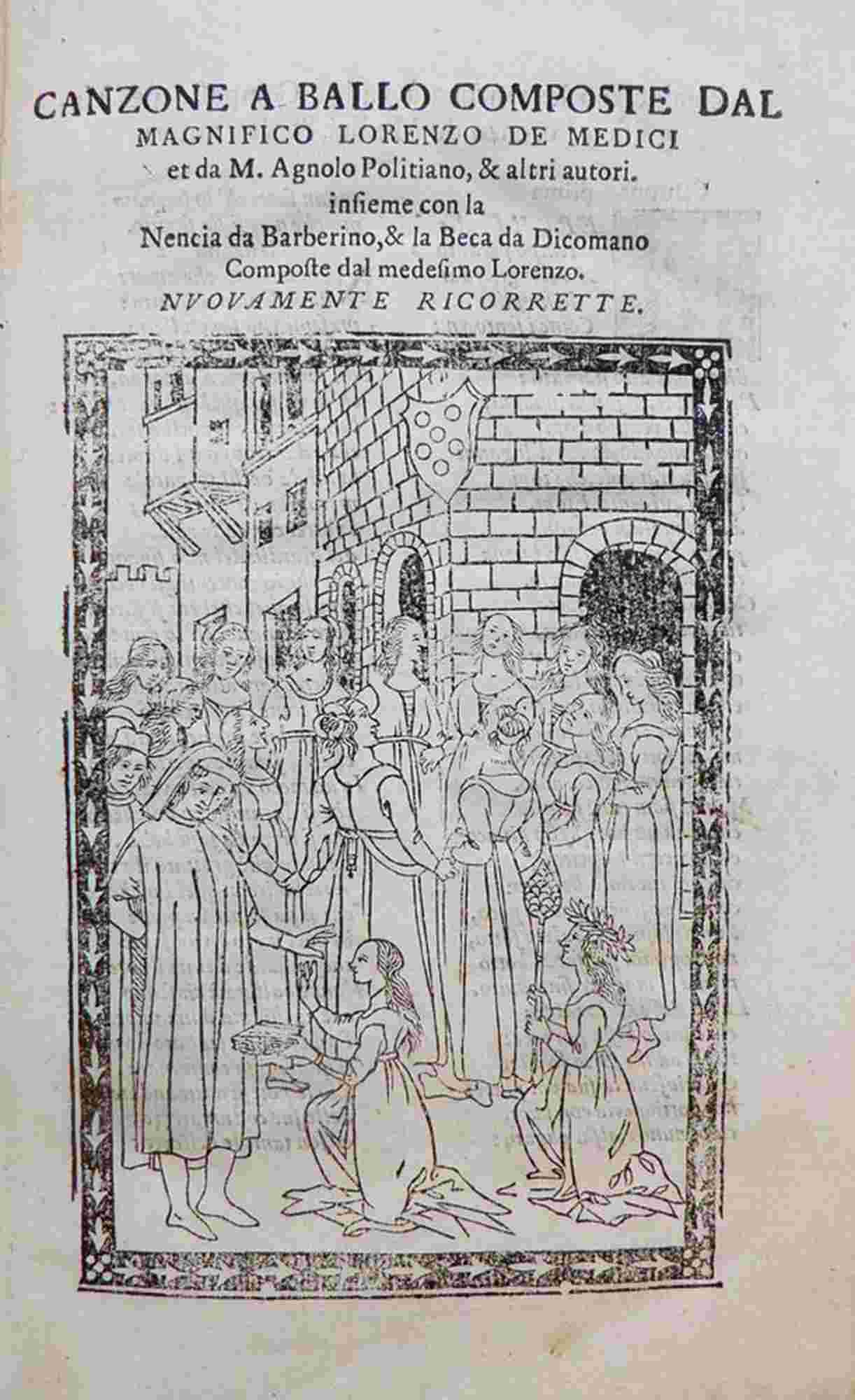 Canzone a ballo composte dal magnifico Lorenzo de Medici et da M. Agnolo Poiliziano, & altri autori, insieme con la Nencia da Barberino, e la Beca da Dicomano composte dal medesinmo Lorenzo. Nuovamente ricorrette (colophon; In Firenze, no printer, 1568), but B. Gamba da Bassano, early XIX century or, more probably, late XVIIIth century