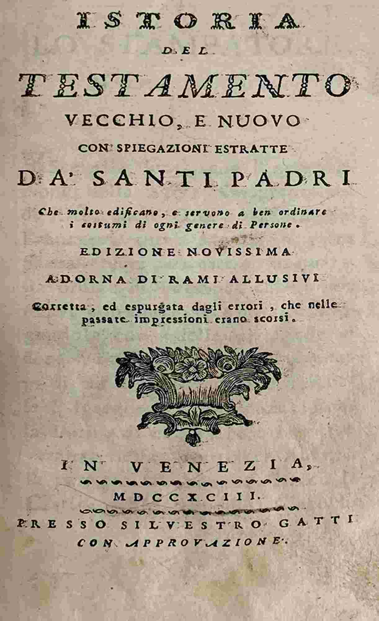 Istoria Del Testamento Vecchio E Nuovo, Venezia, Silvestro Gatti, 1793