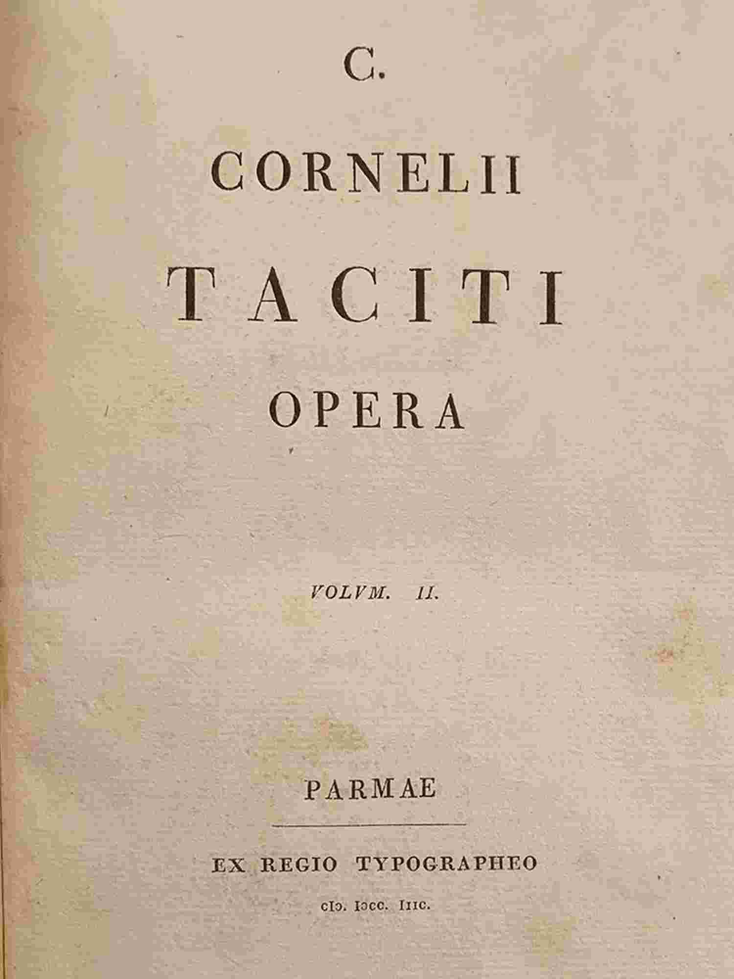 CORNELIO TACITO: Opera Parmae, ex regio typographeo 1797