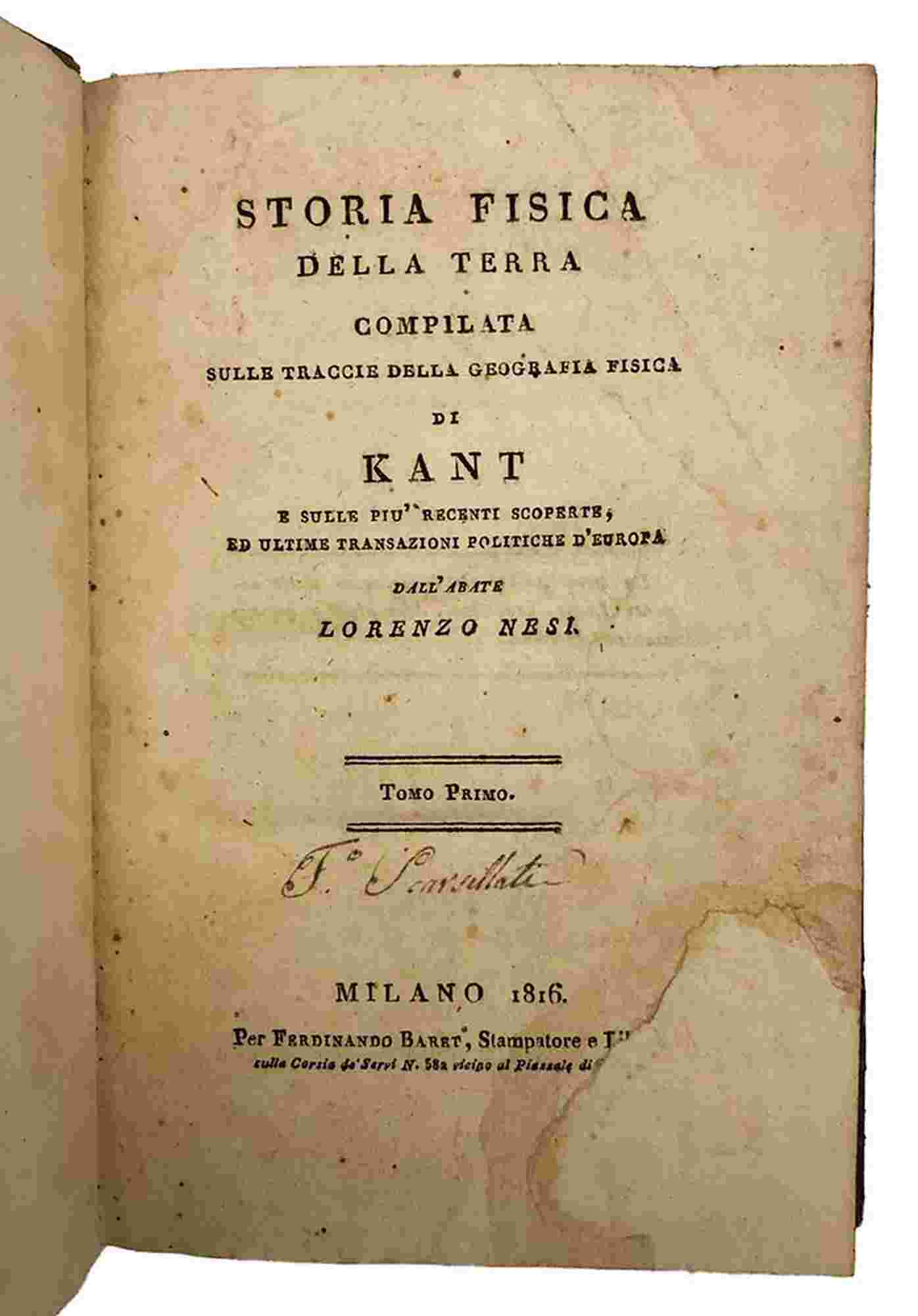 LORENZO NESI: Storia Fisica Della Terra, Milano, Per Ferdinando Baret, 1816