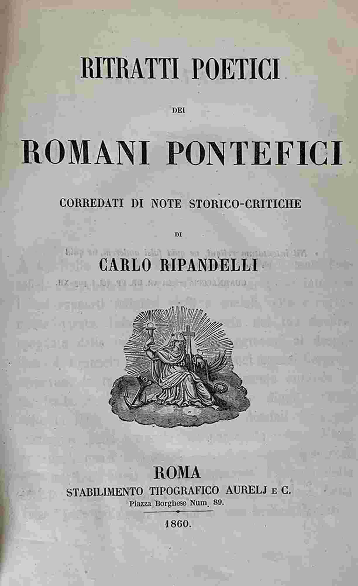 CARLO RIPANDELLI: Ritratti Poetici Dei Romani Pontefici, Roma, Stabilimento Tip. Aureli, 1860