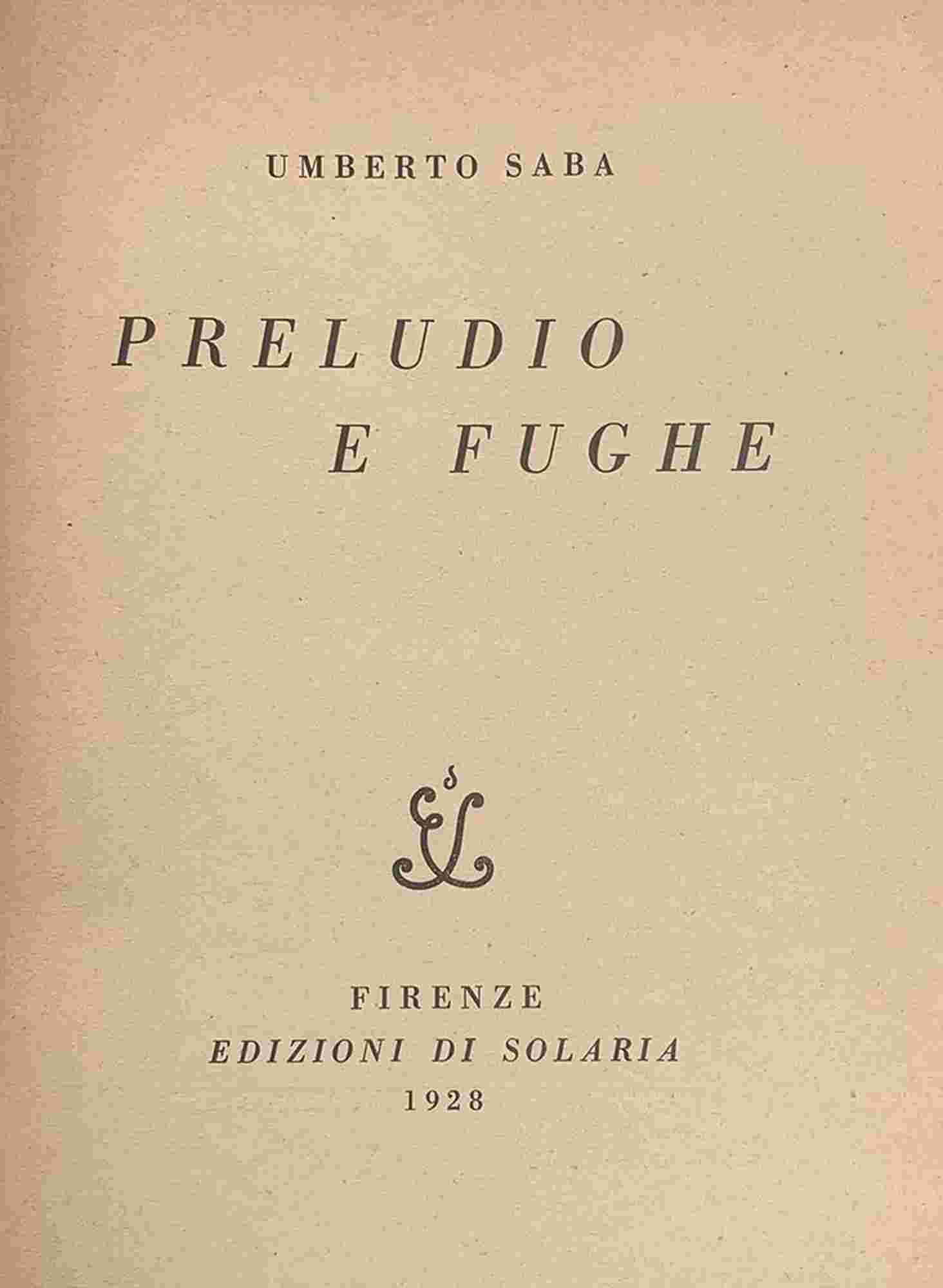 UMBERTO SABA: Preludio e Fuga. Firenze, Edizioni di Solaria 1928