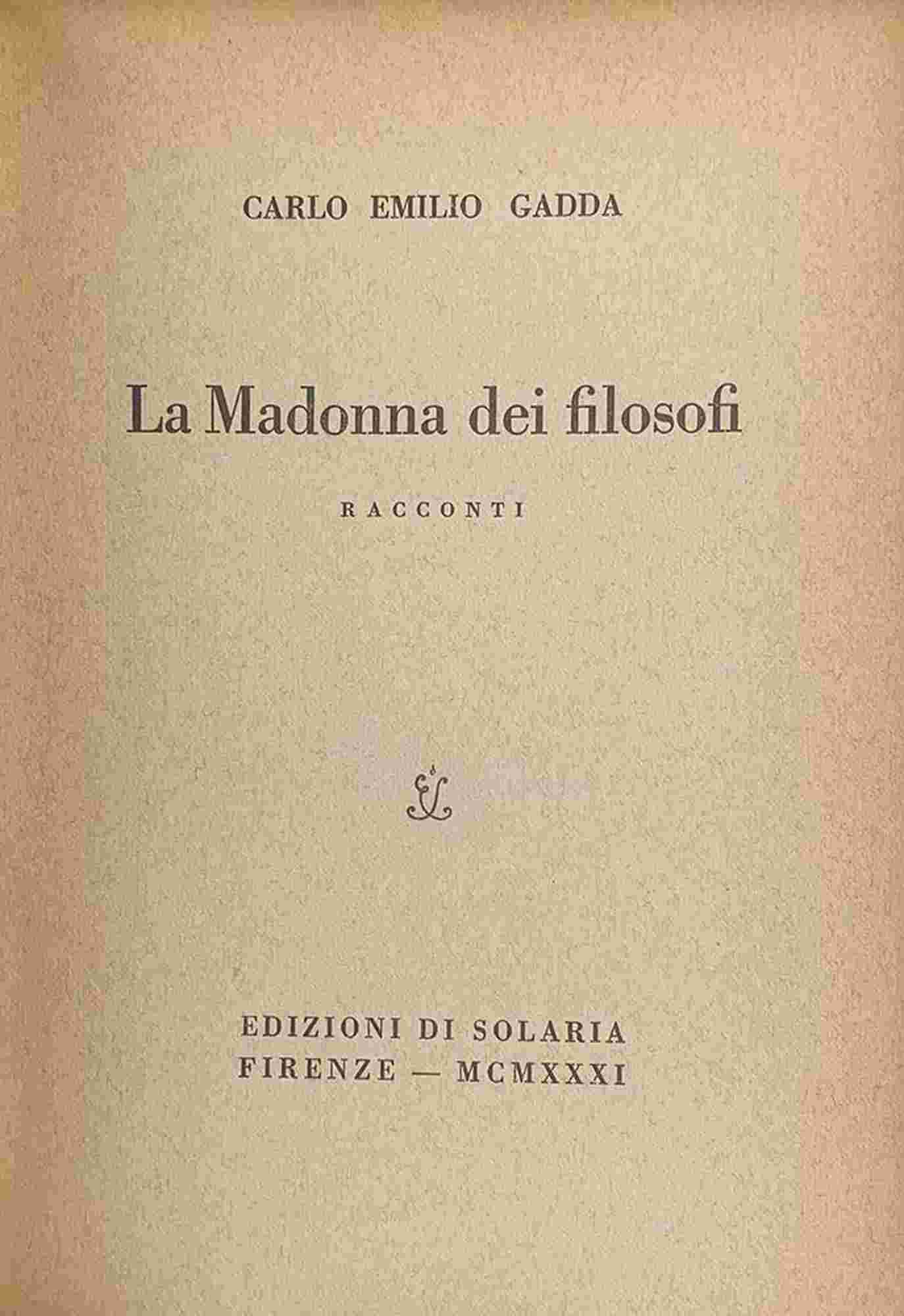 GADDA CARLO EMILIO: La Madonna dei filosofi Firenze, Edizioni di Solaria 1931