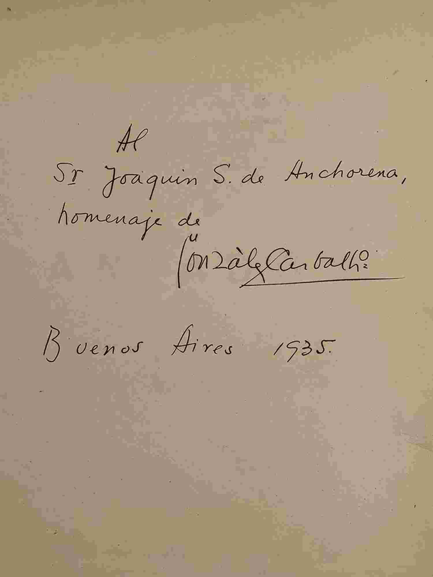 First edition of the songs of the Argentine poet Carbalho with autograph dedication to Joaquin S. De Anchorena politician and mayor of Buenos Aires