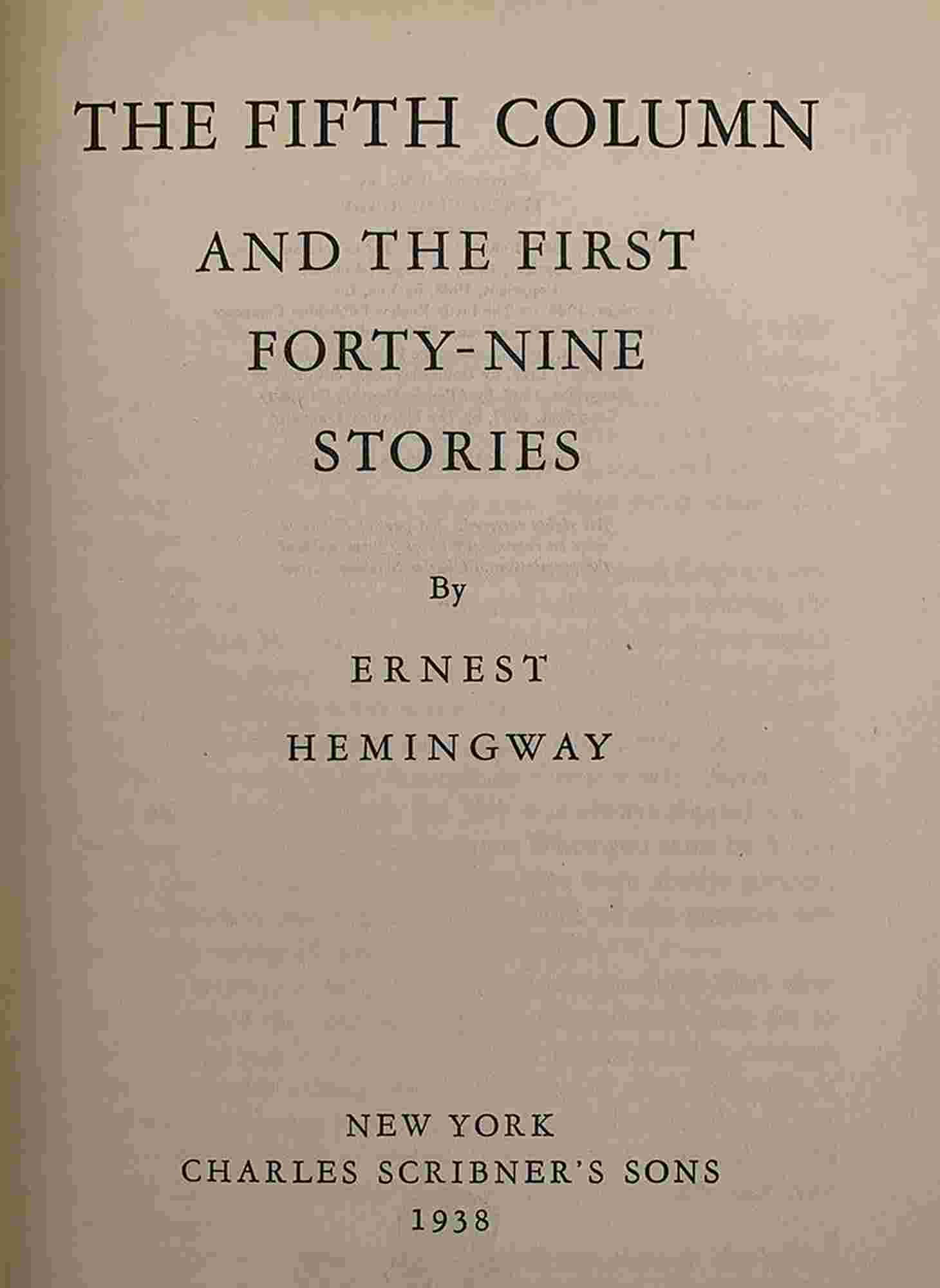ERNEST HEMINGWAY: The fifth column and the first forty-nine stories New York, Charles Scribner’s son 1938