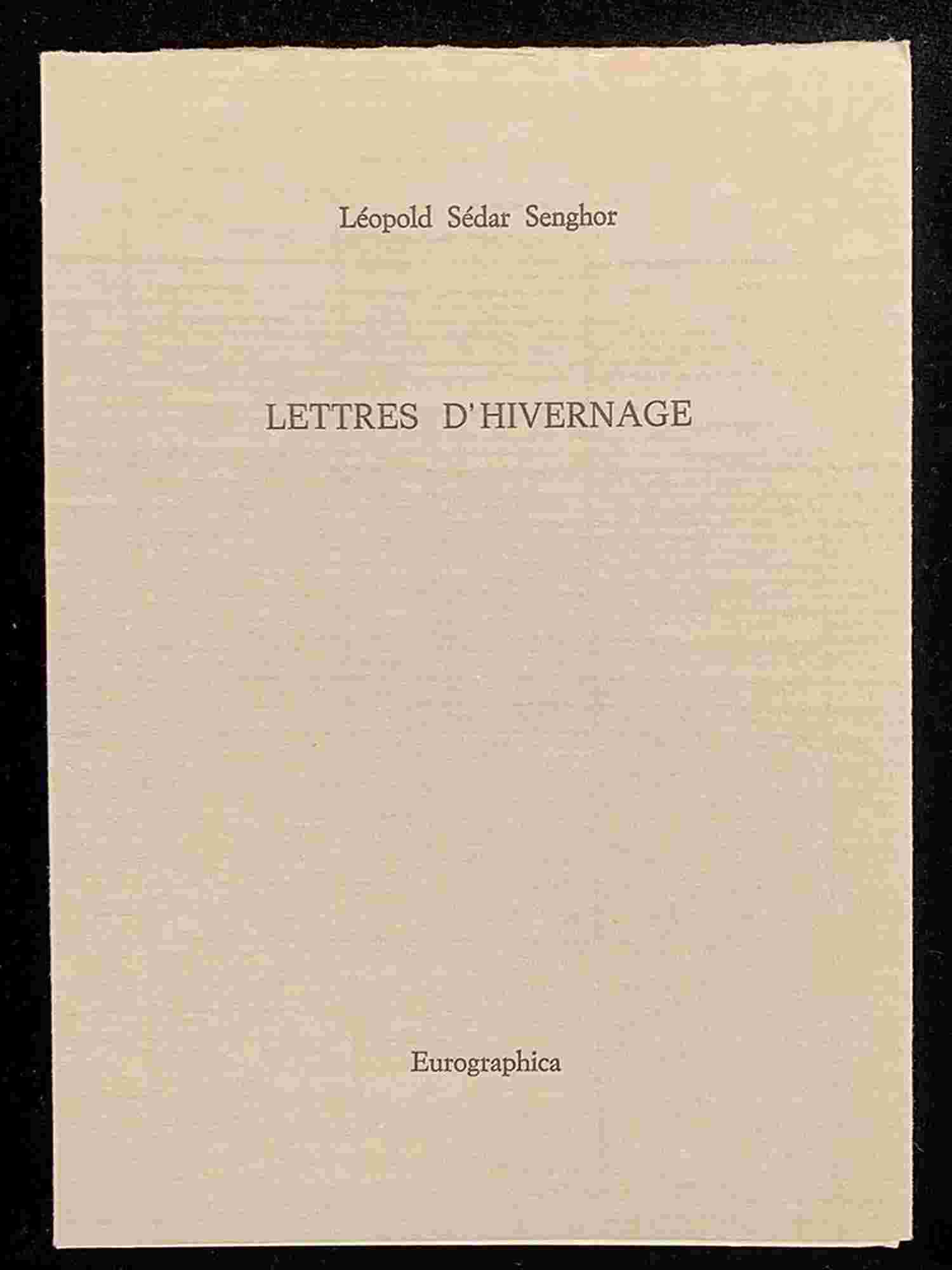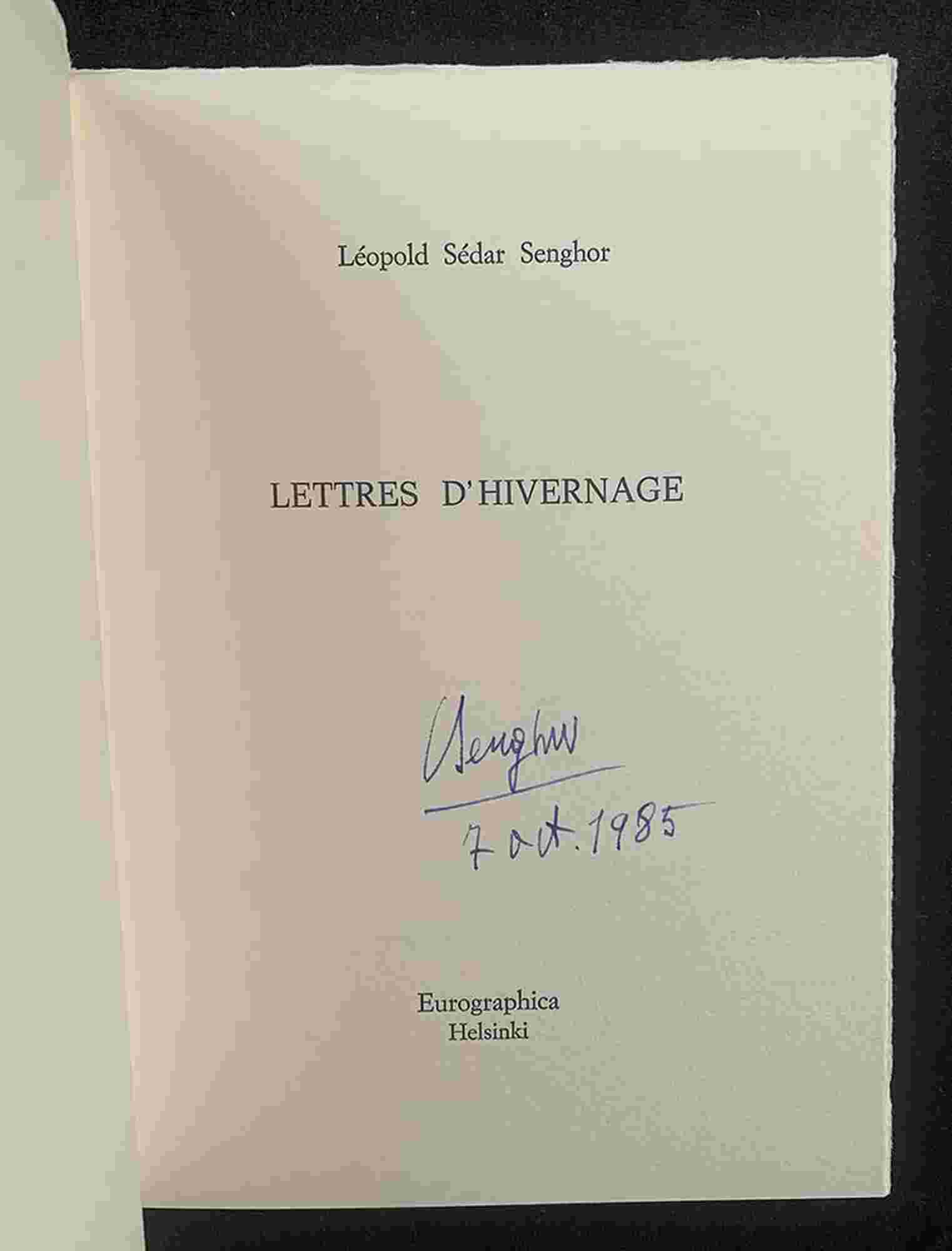 LÉOPOLD SÉDAR SENGHOR: Lettres d’hiverrnage Eurographica Helsinki, 1985