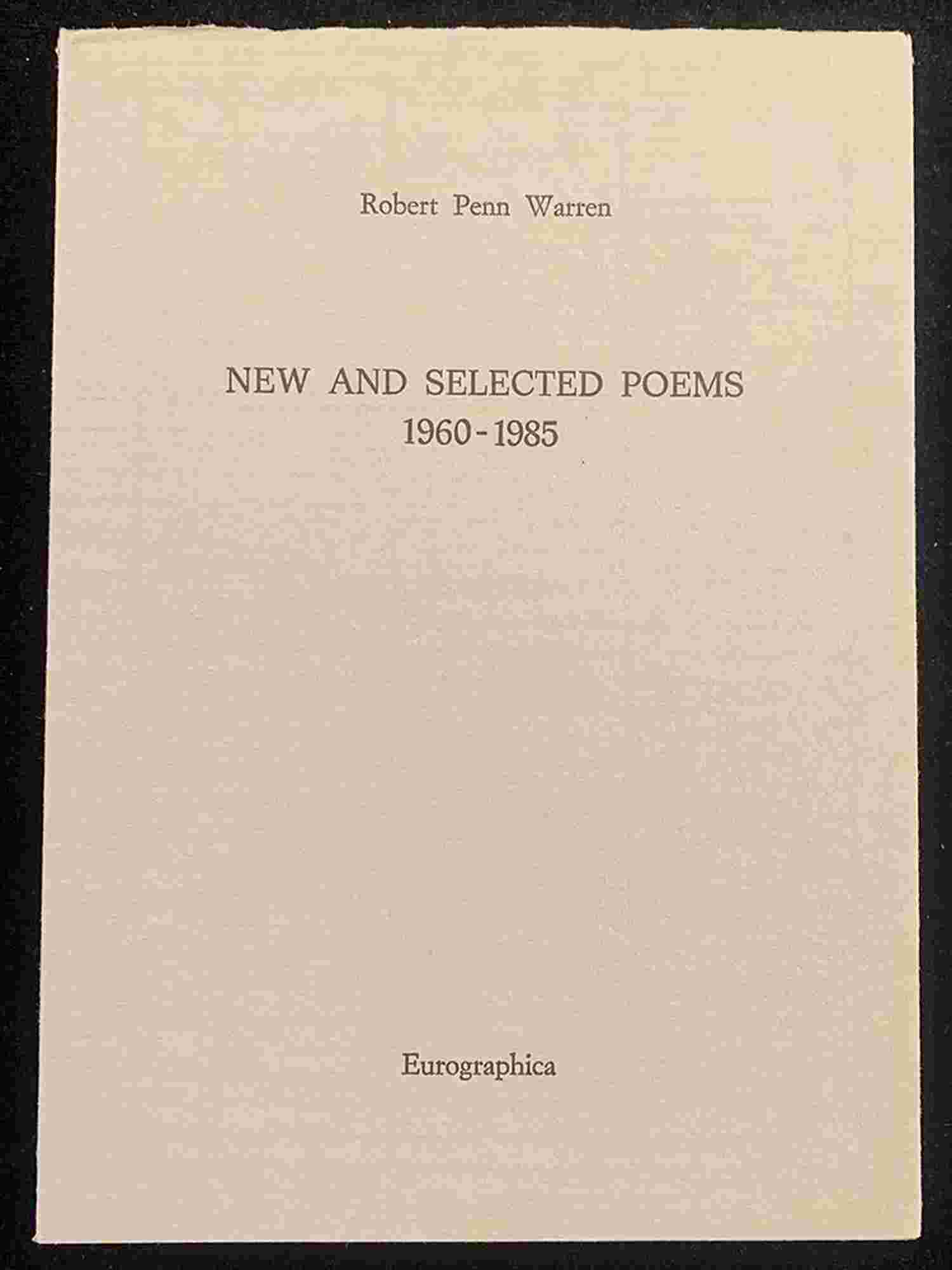 ROBERT PENN WARREN: New and selected poems 1960-1985 Eurographica Helsinki, 1986