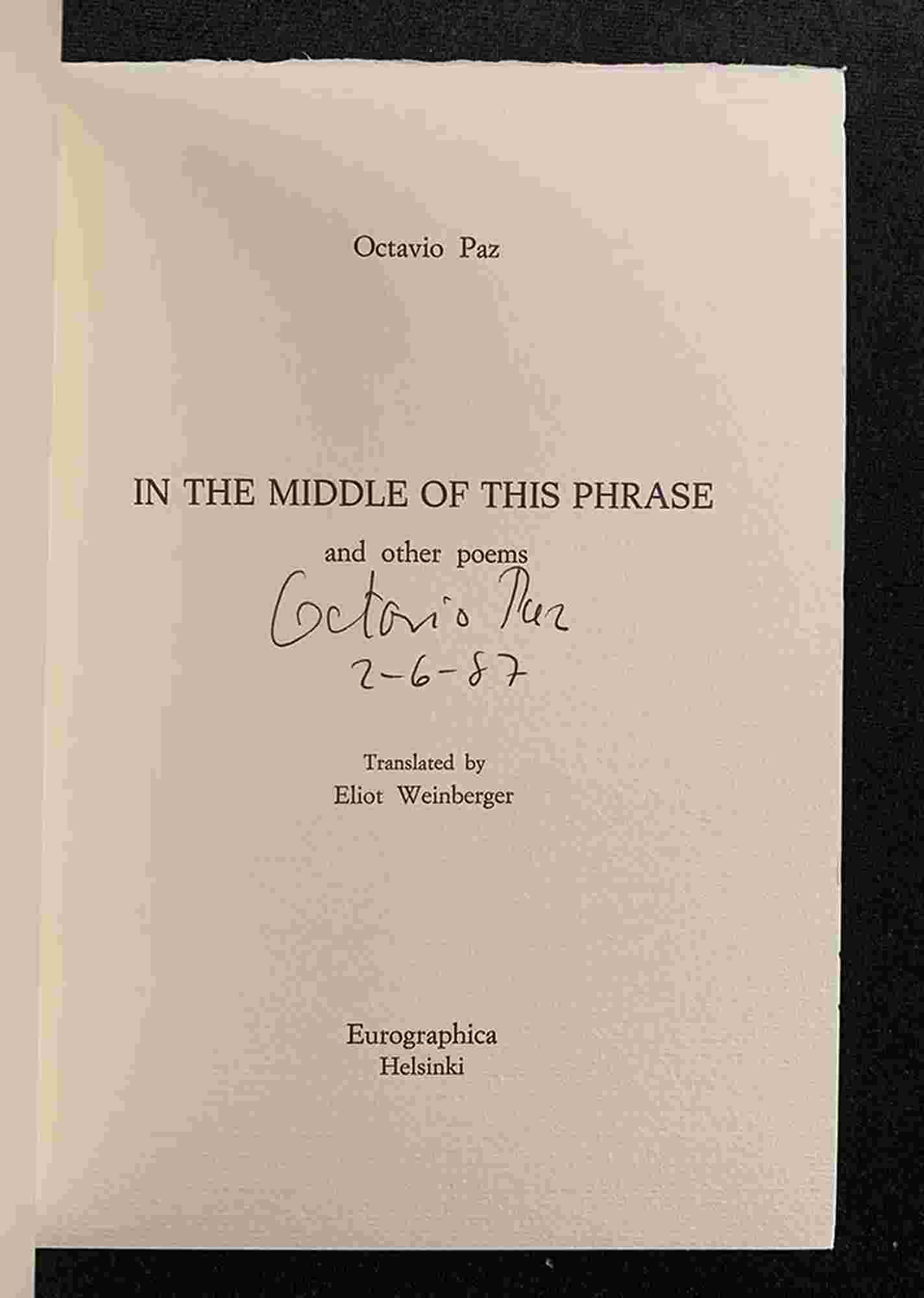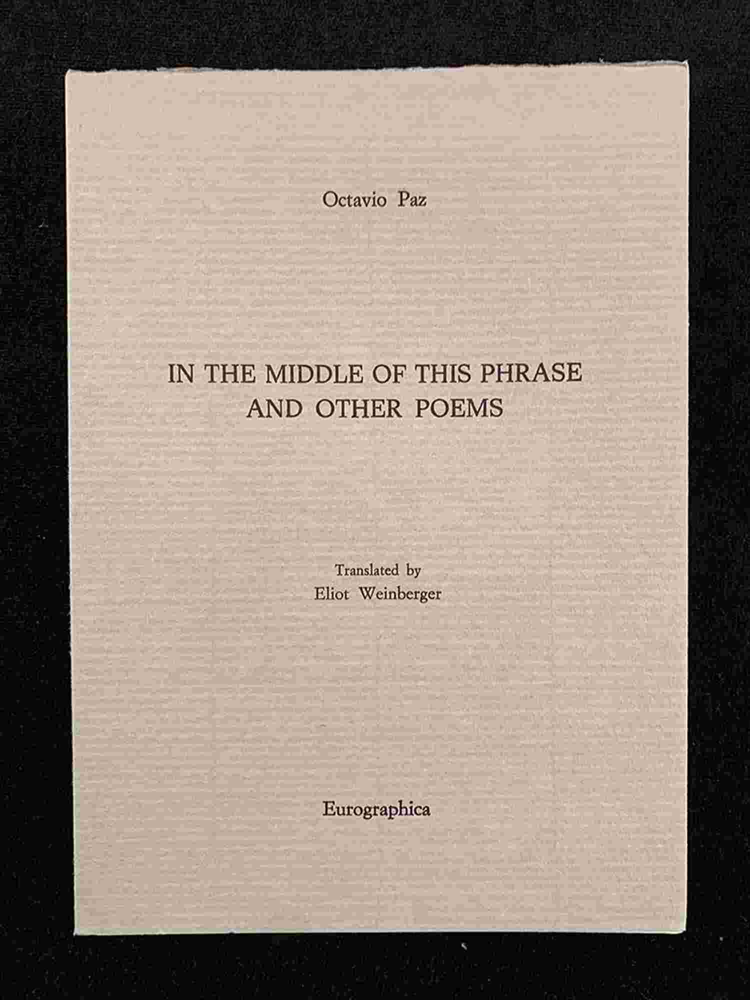 OCTAVIO PAZ: In the middle of this phrase and other poems Eurographica Helsinki, 1987
