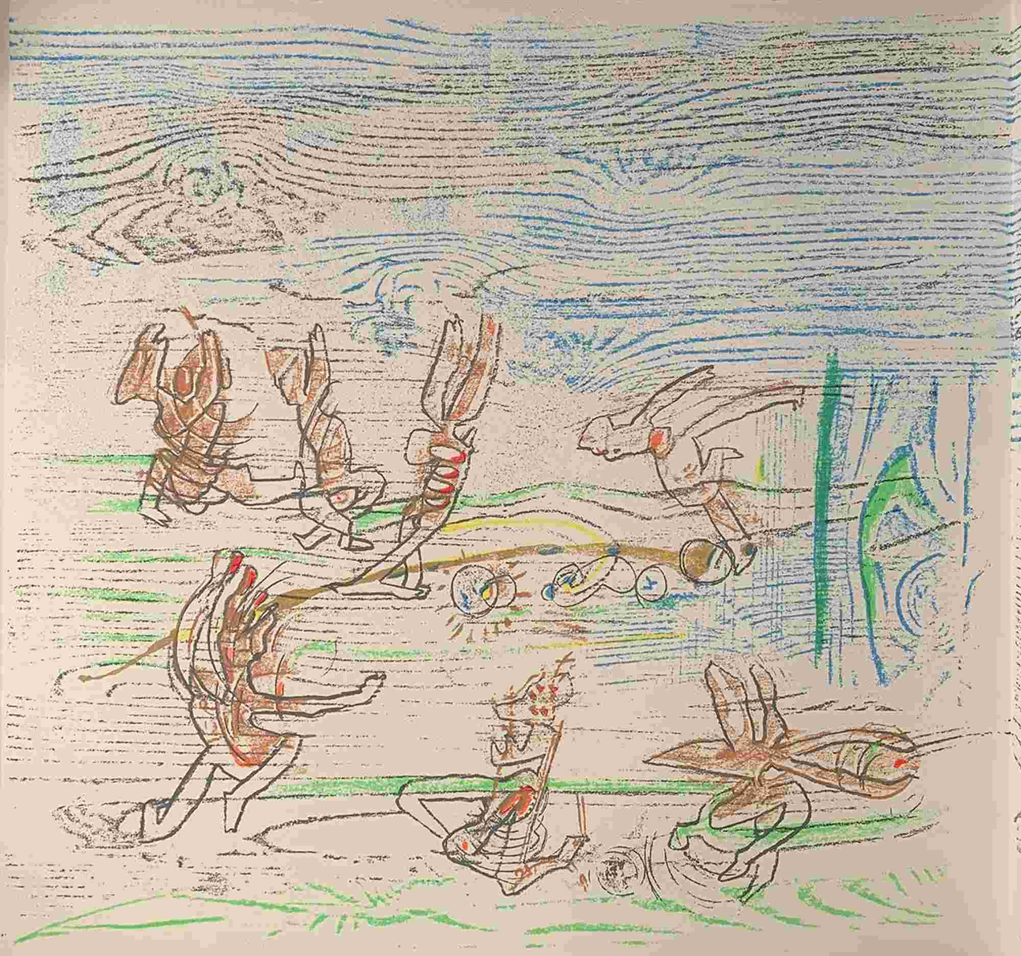 Leporello book containing a lithograph made up of 8 different designs folded in a book measuring 55x58cm each, in total forming a single lithograph 5 metres and 22 centimetres long.