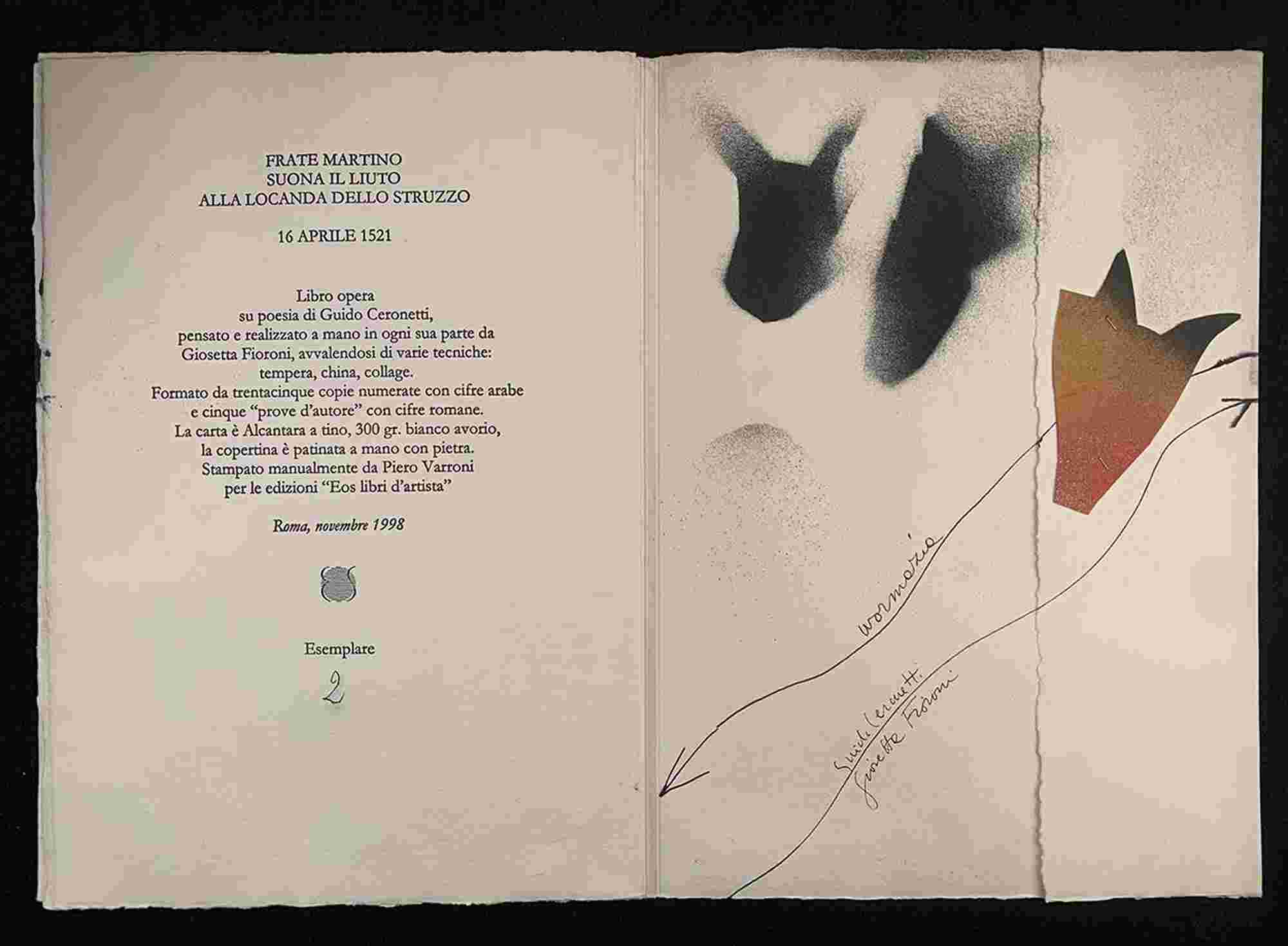 and can therefore be considered a unique work. Pen signatures of Giosetta Fioroni and Guido Ceronetti.