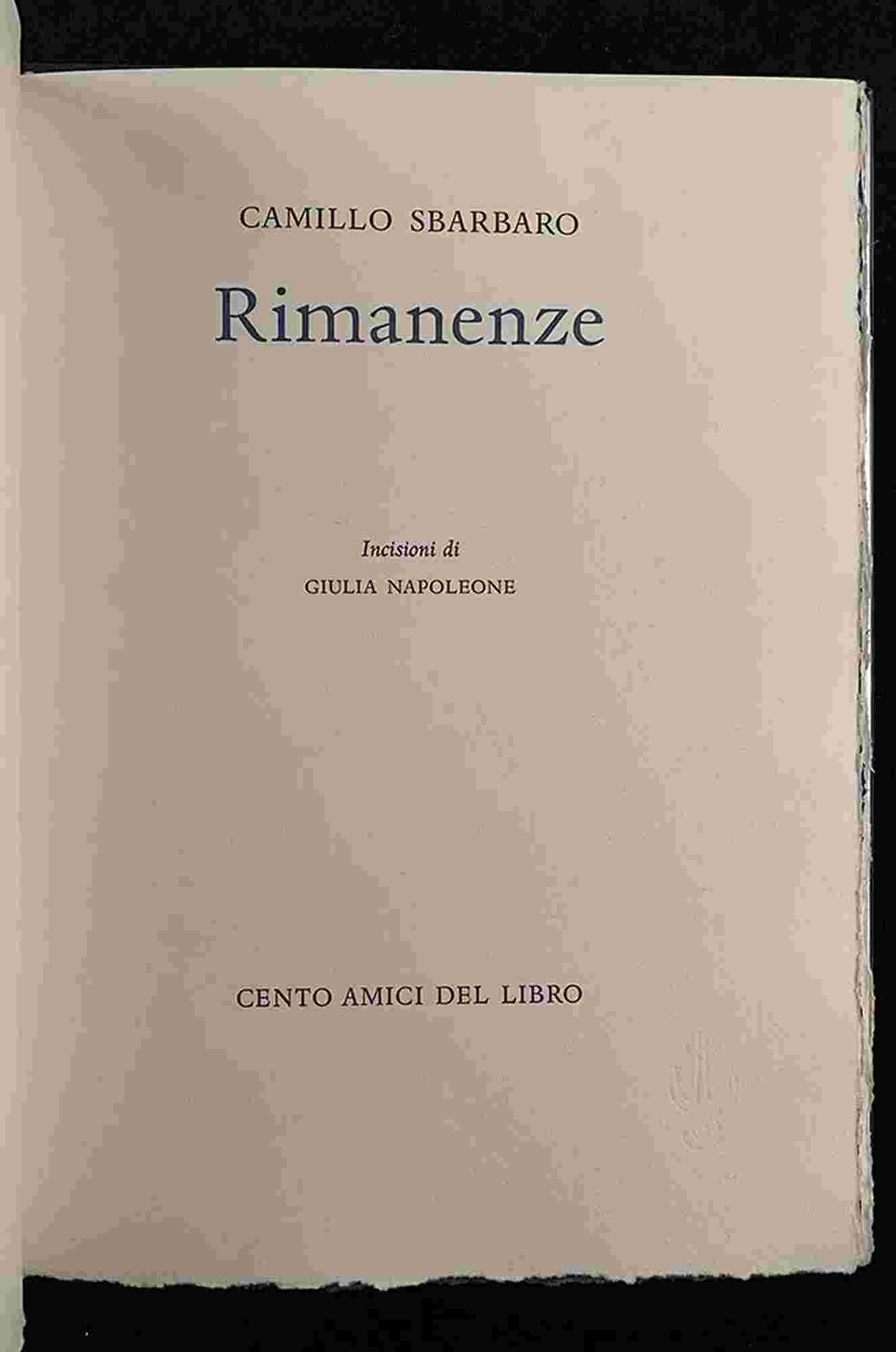 CAMILLO SBARBARO - GIULIA NAPOLEONE: Rimanenze Milano, Cento amici dei libri 2001