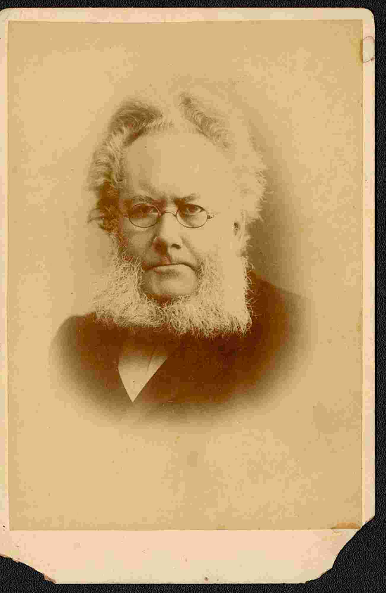 Fotografia applicata su passe-par-tout (11,3 cm x 17,3 cm) del drammaturgo norvegese. In buone