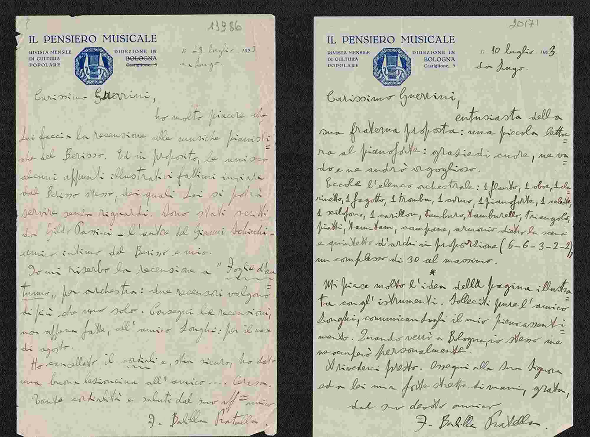 Otto lettere autografe firmate del compositore, datate tra il 1910 e il 1924 Annoverato tra i padri della