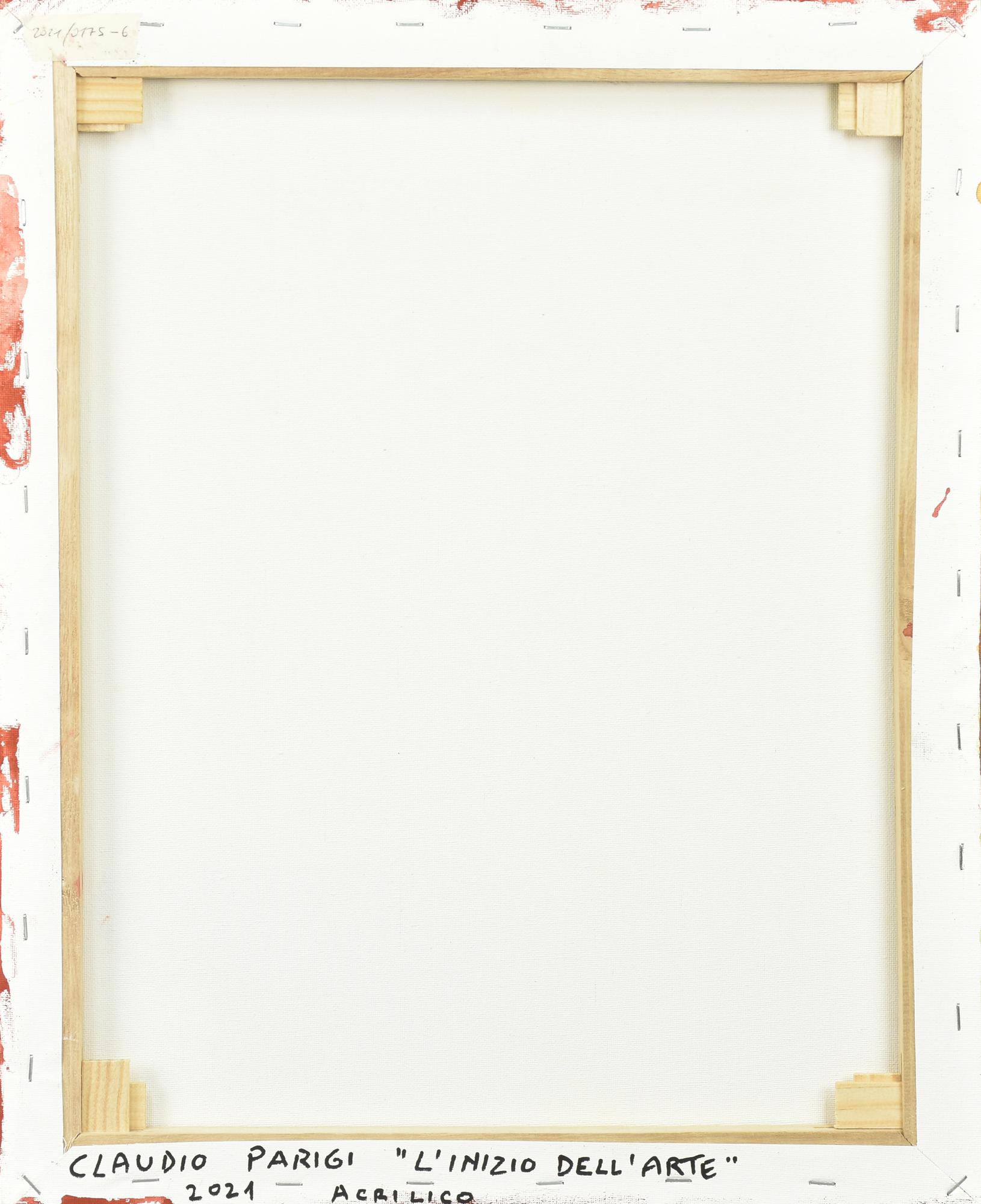 Claudio Parigi L'INIZIO DELL'ARTE acrilico su tela, cm 50x40 firma sul retro:...