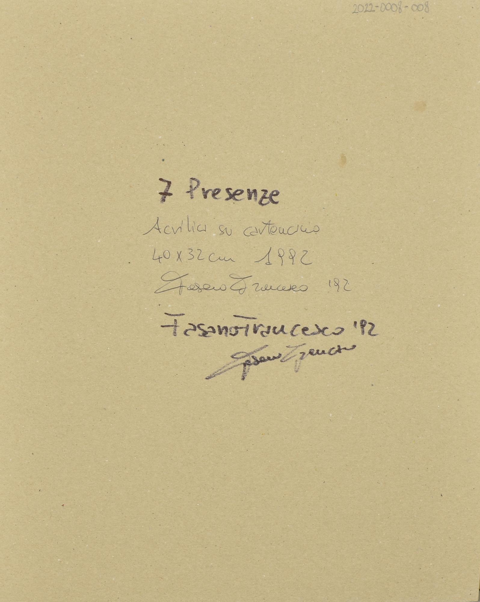 Lot 44 | Francesco Fasano 7 PRESENZE acrilico su cartoncino, cm 40x32 sul retro:...